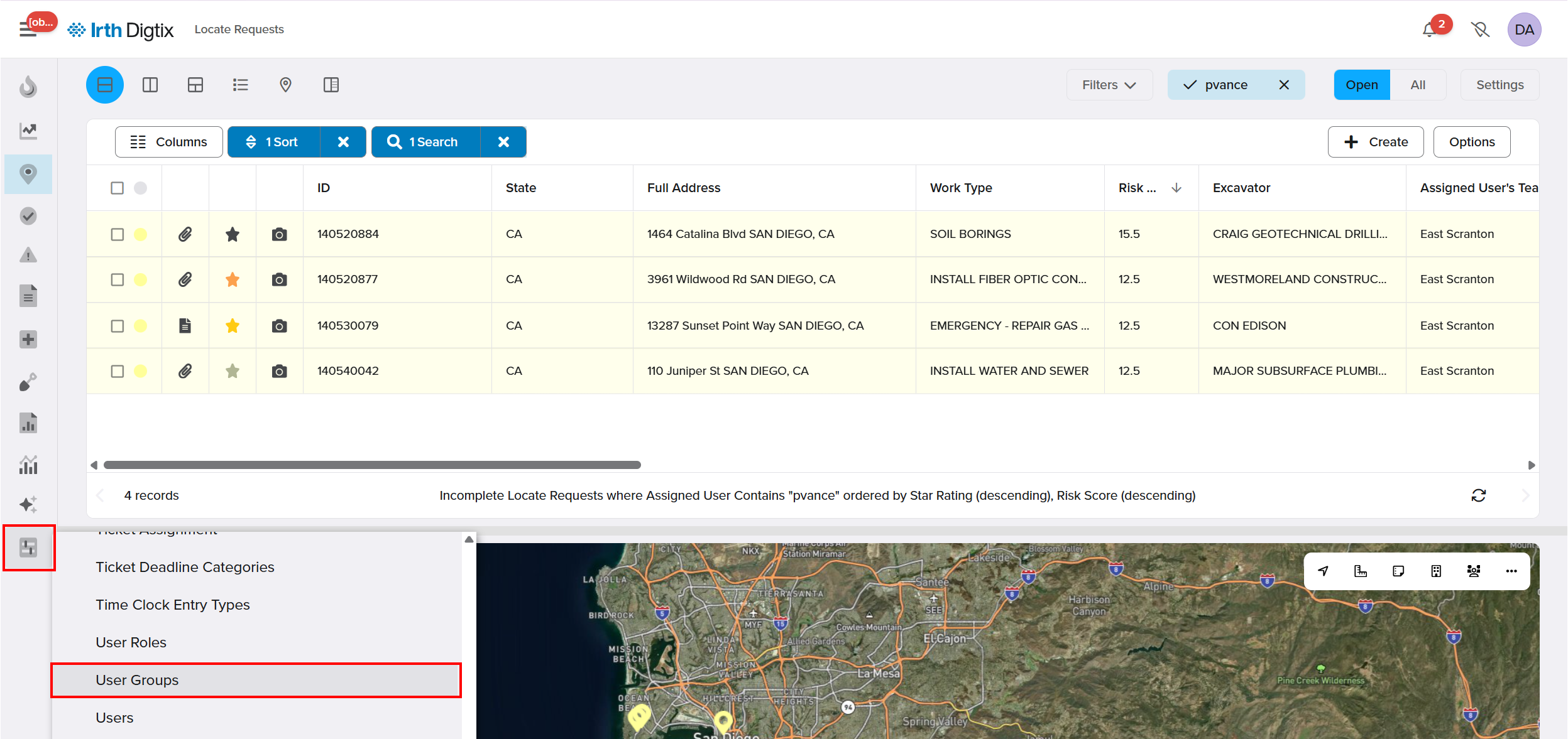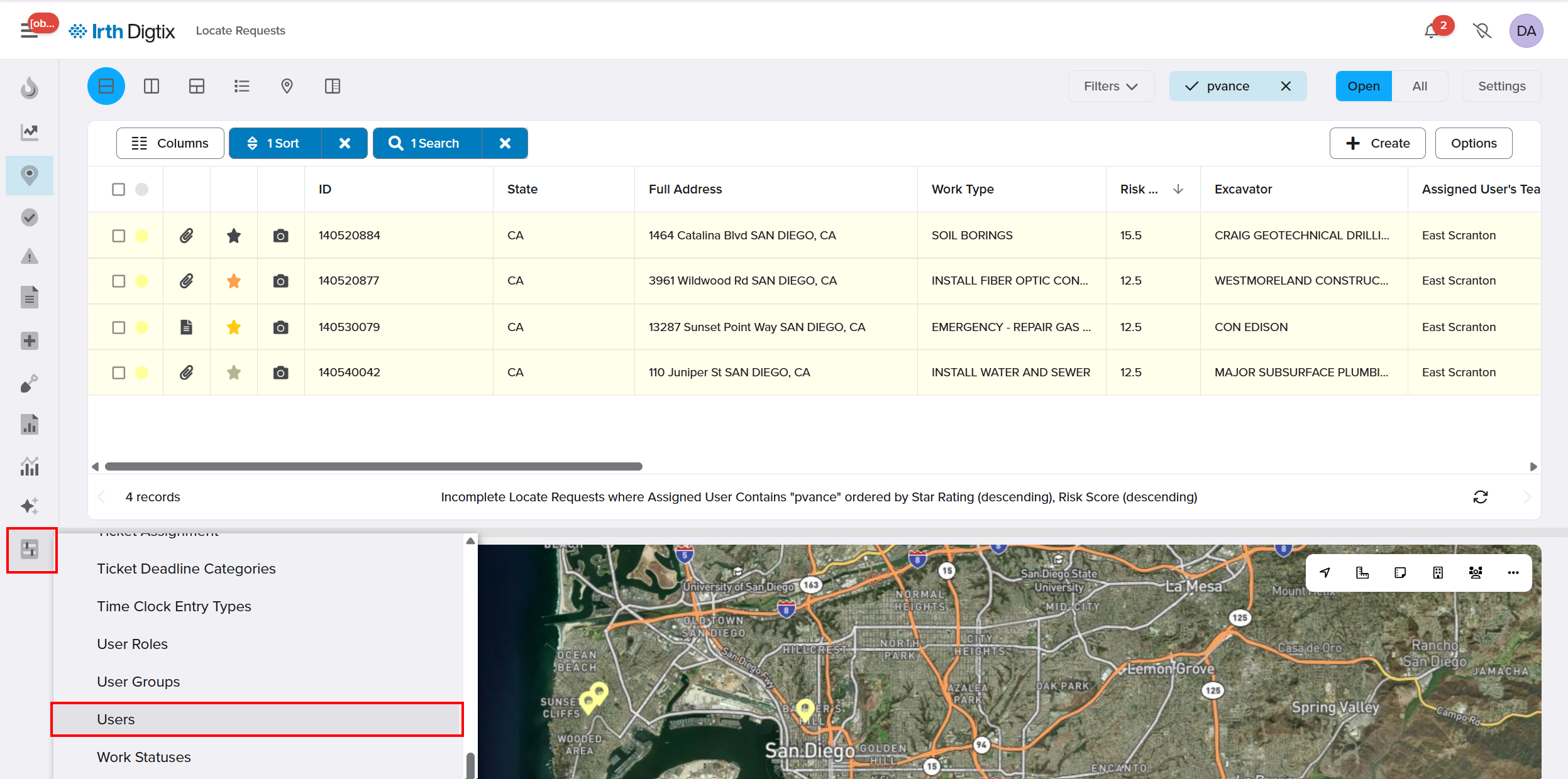 - One Call Center: Access limited to work orders originating from that One Call Center