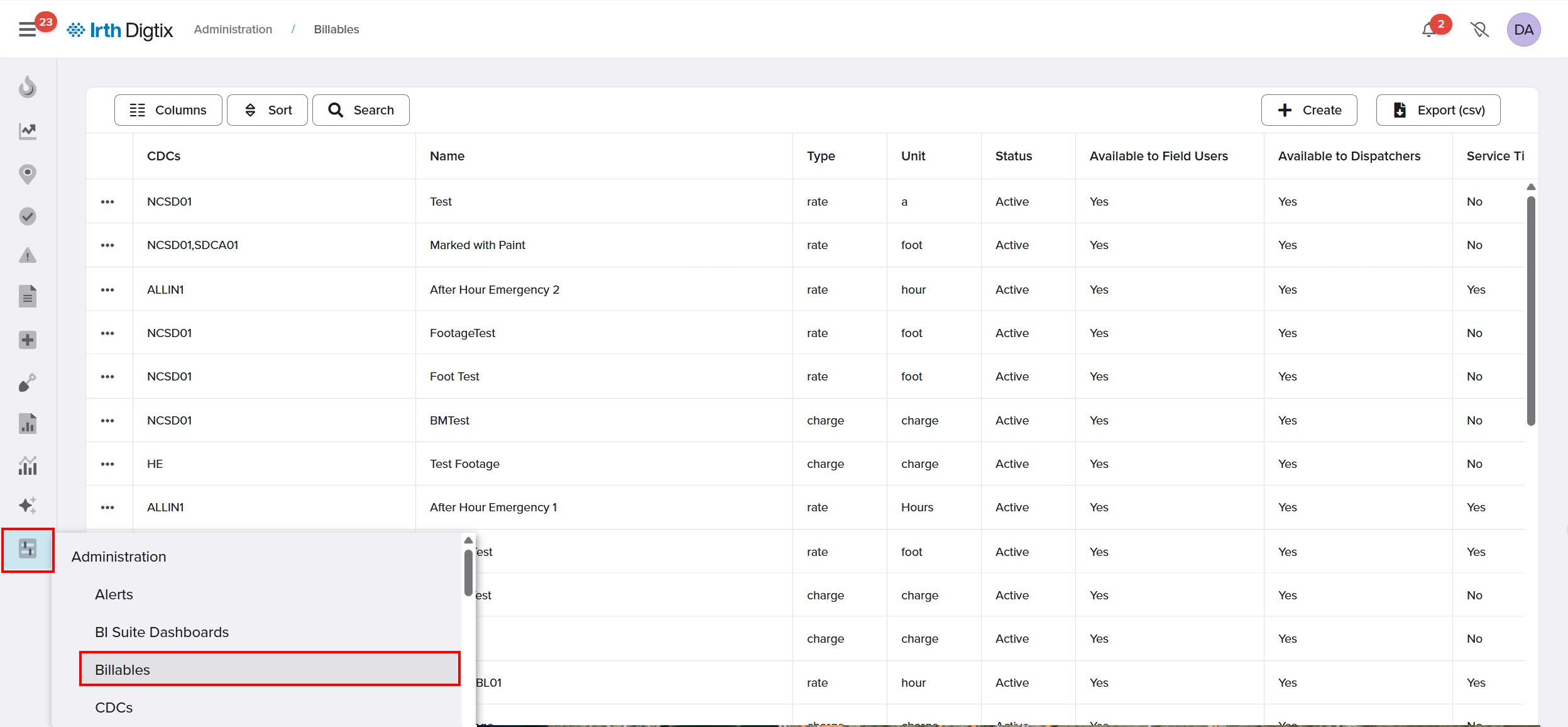 To access this feature: Digtix > Administration > CDCs/Billables