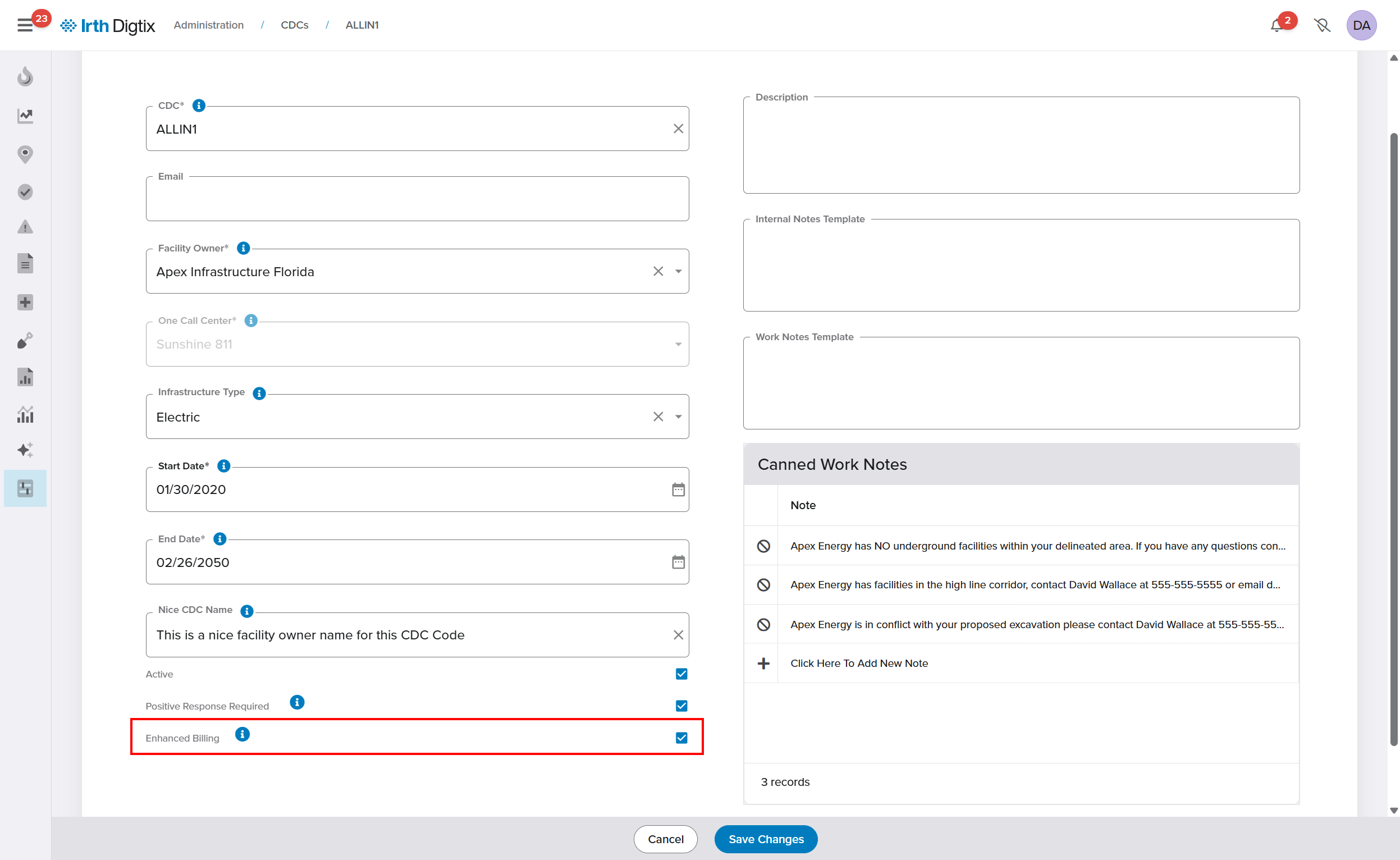 Configure a CDC for Enhanced Billing