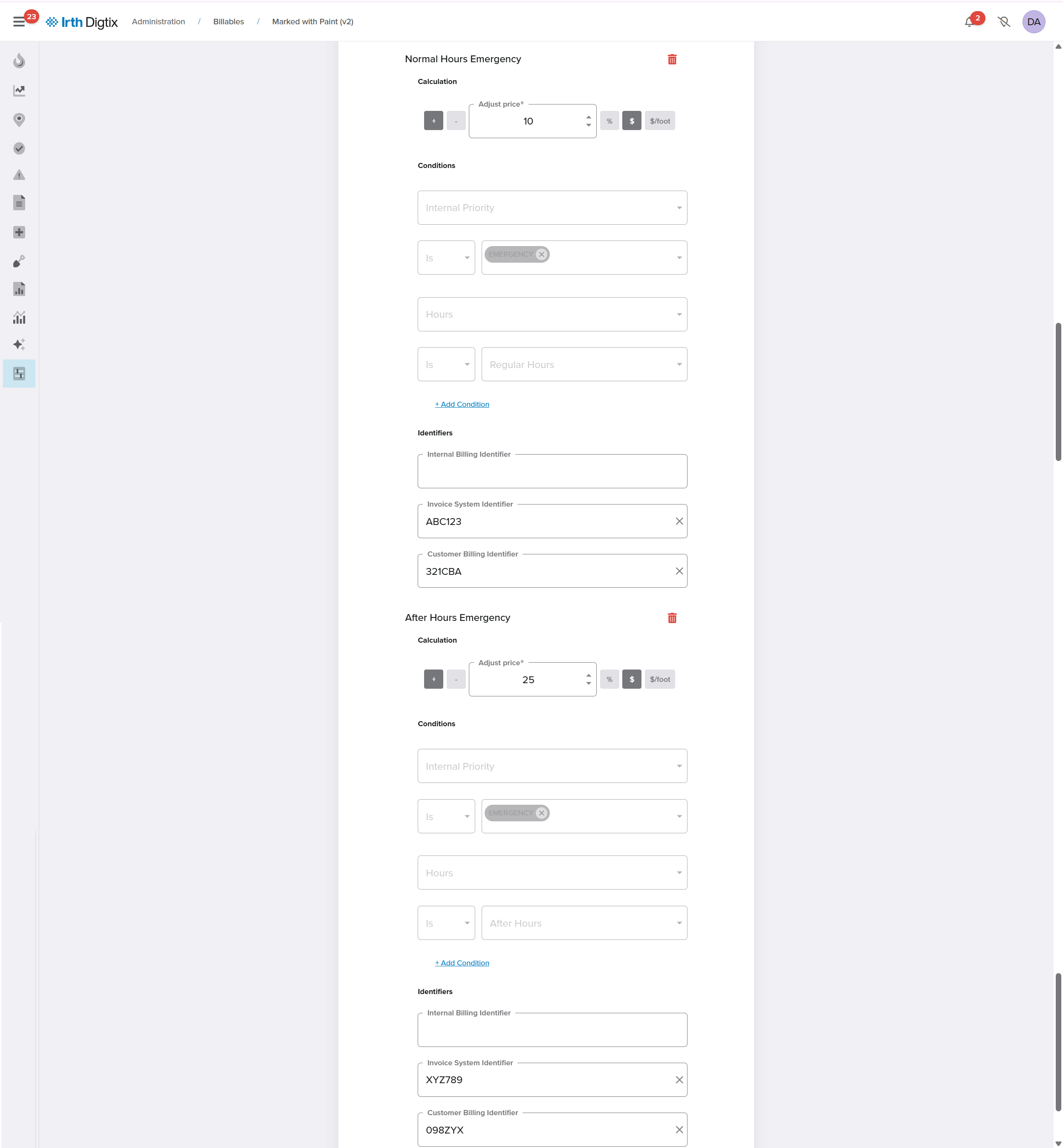 Unlike basic billing, which captures a single price per close code, enhanced billing automatically calculates the correct charge based on when and how work is performed (for example, emergency vs. routine, normal hours vs. after hours, total footage or hours, or the number of facility owners involved).