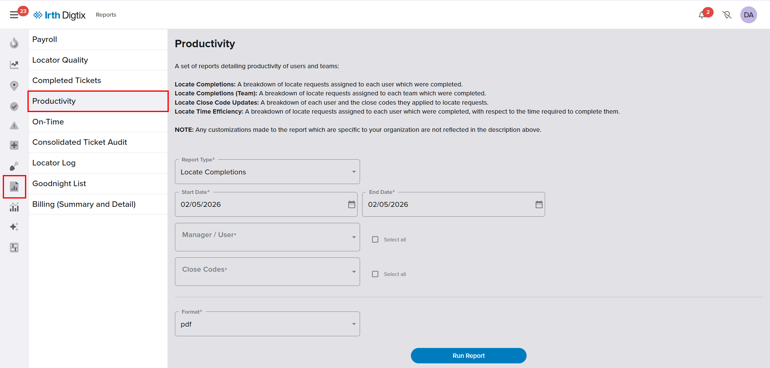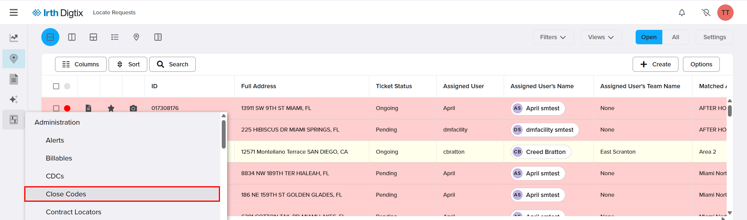 - Go to the Locates menu and select the Close Code menu in a ticket.