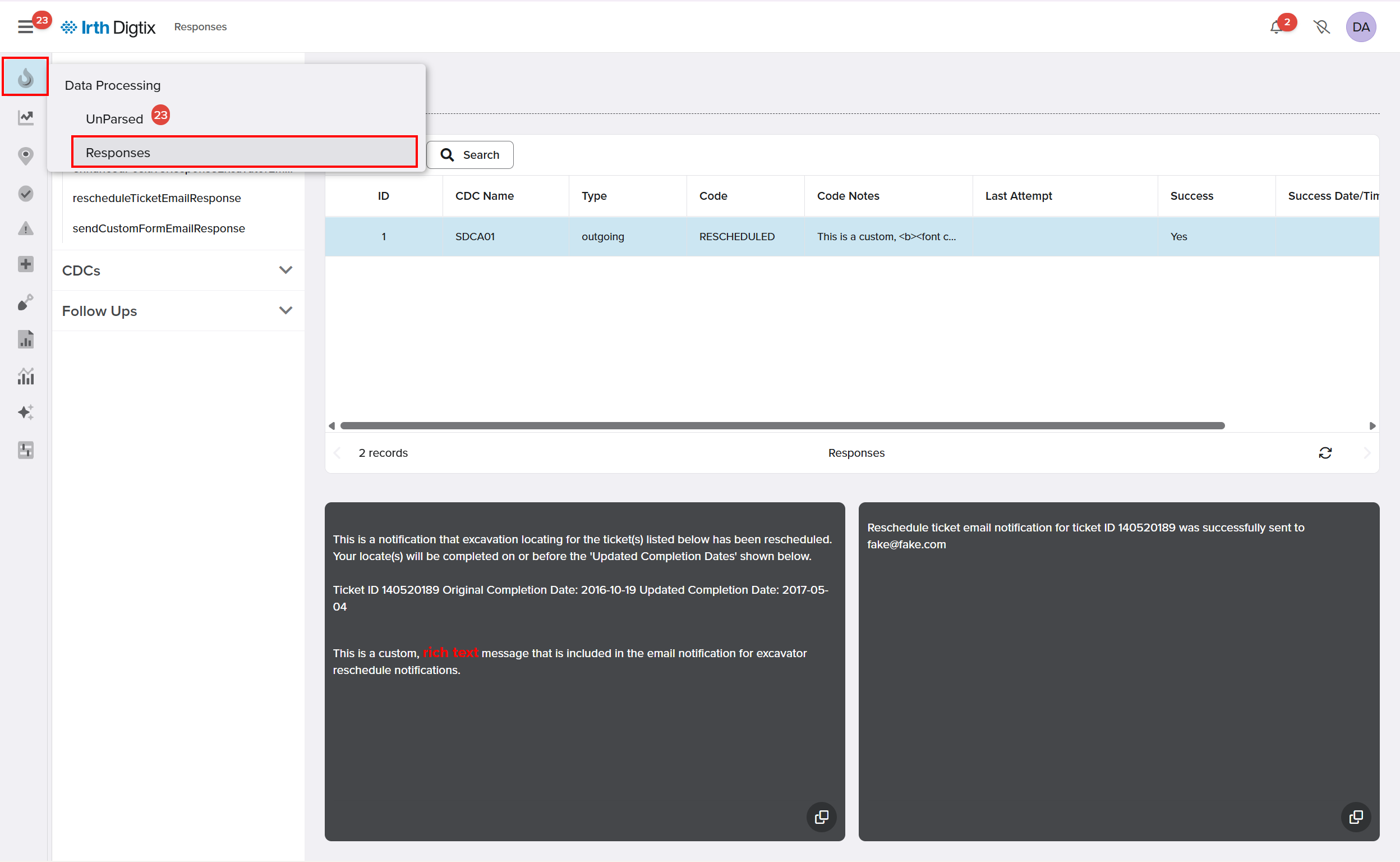 In addition to the History tab, if you have permissions, you can view all outgoing responses on the Responses screen.