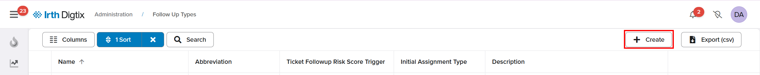 To access this feature: Digtix > Administration > Follow-Up Types