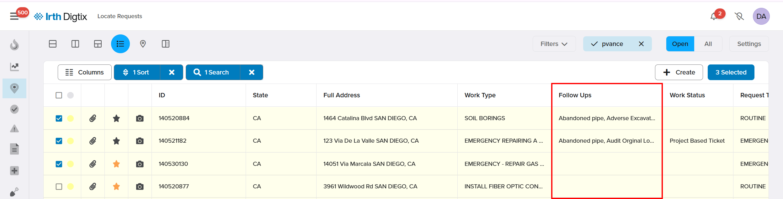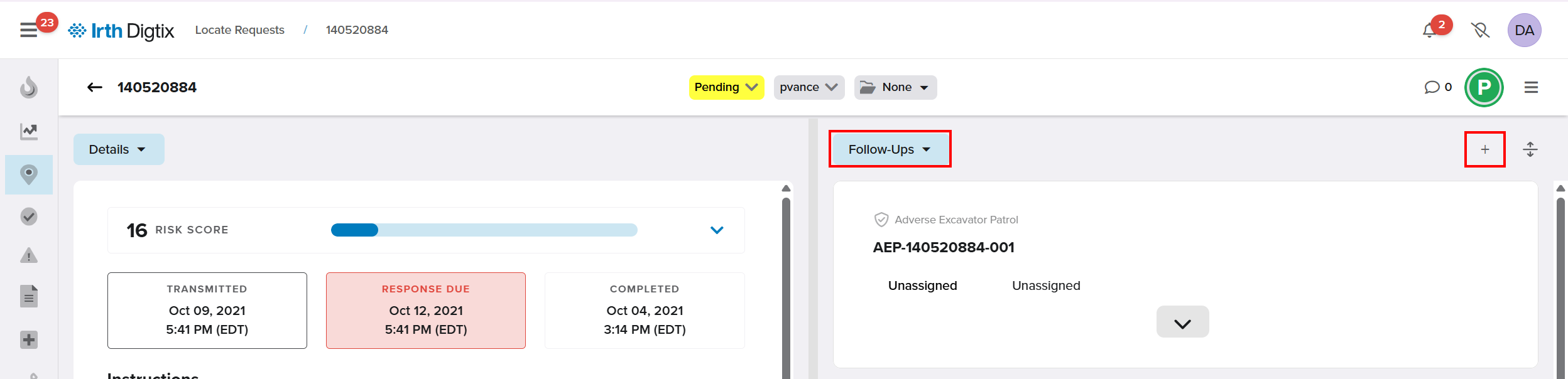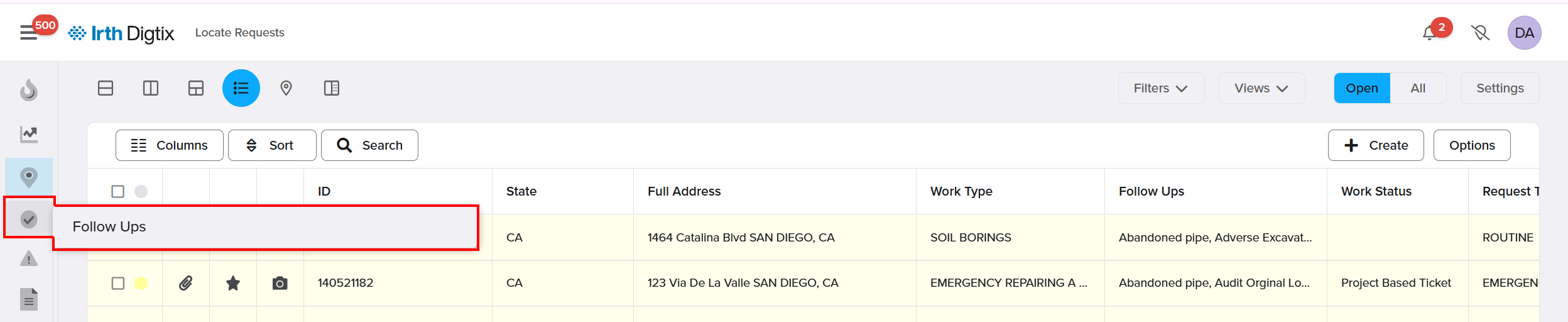 - This provides quick visibility into follow‑up activity across locate requests.