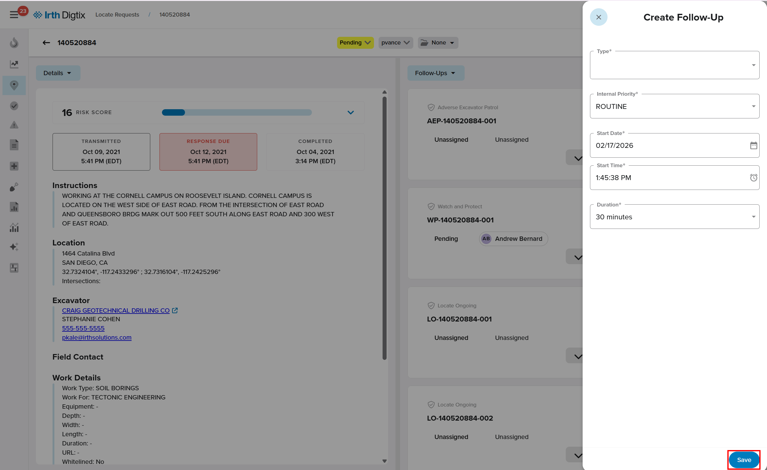 - Create additional follow‑ups for the same locate