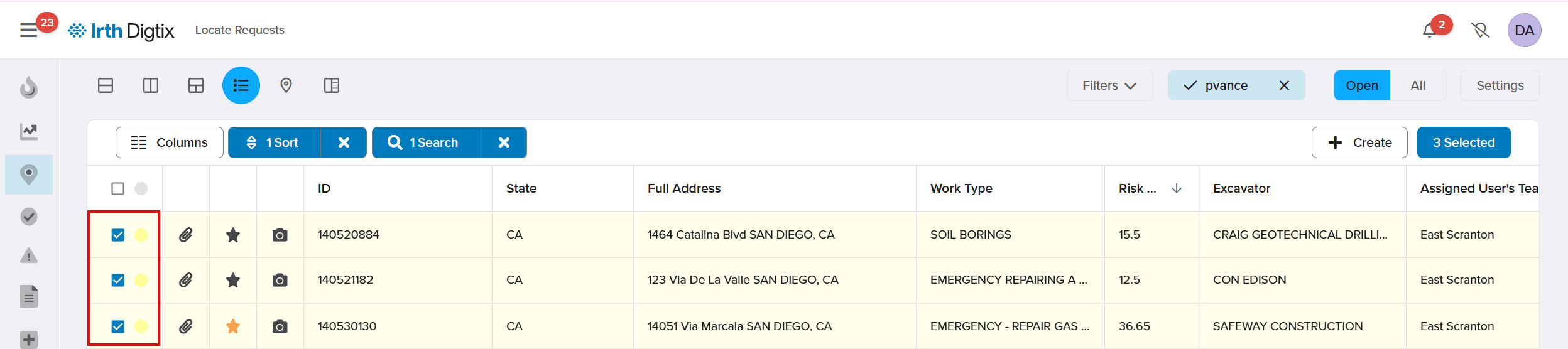 - Select multiple locate requests from the Locates grid.