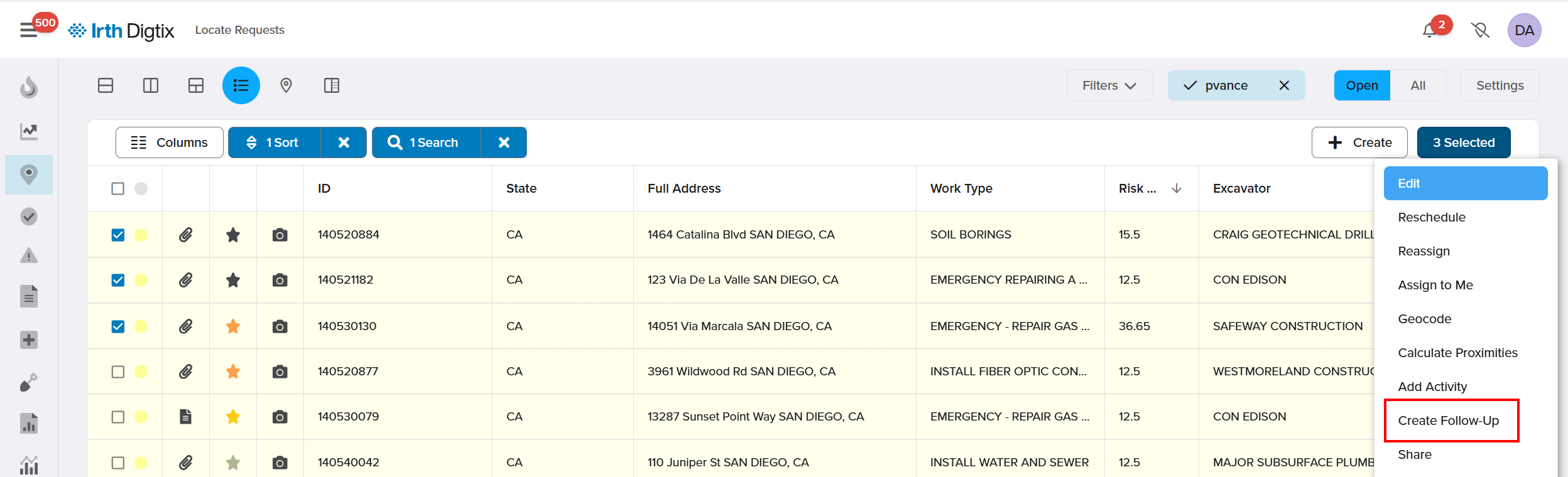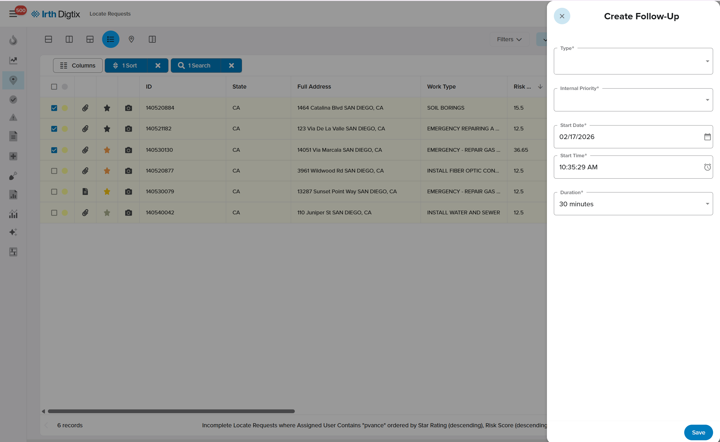 Track Follow‑Ups in the Locates Grid