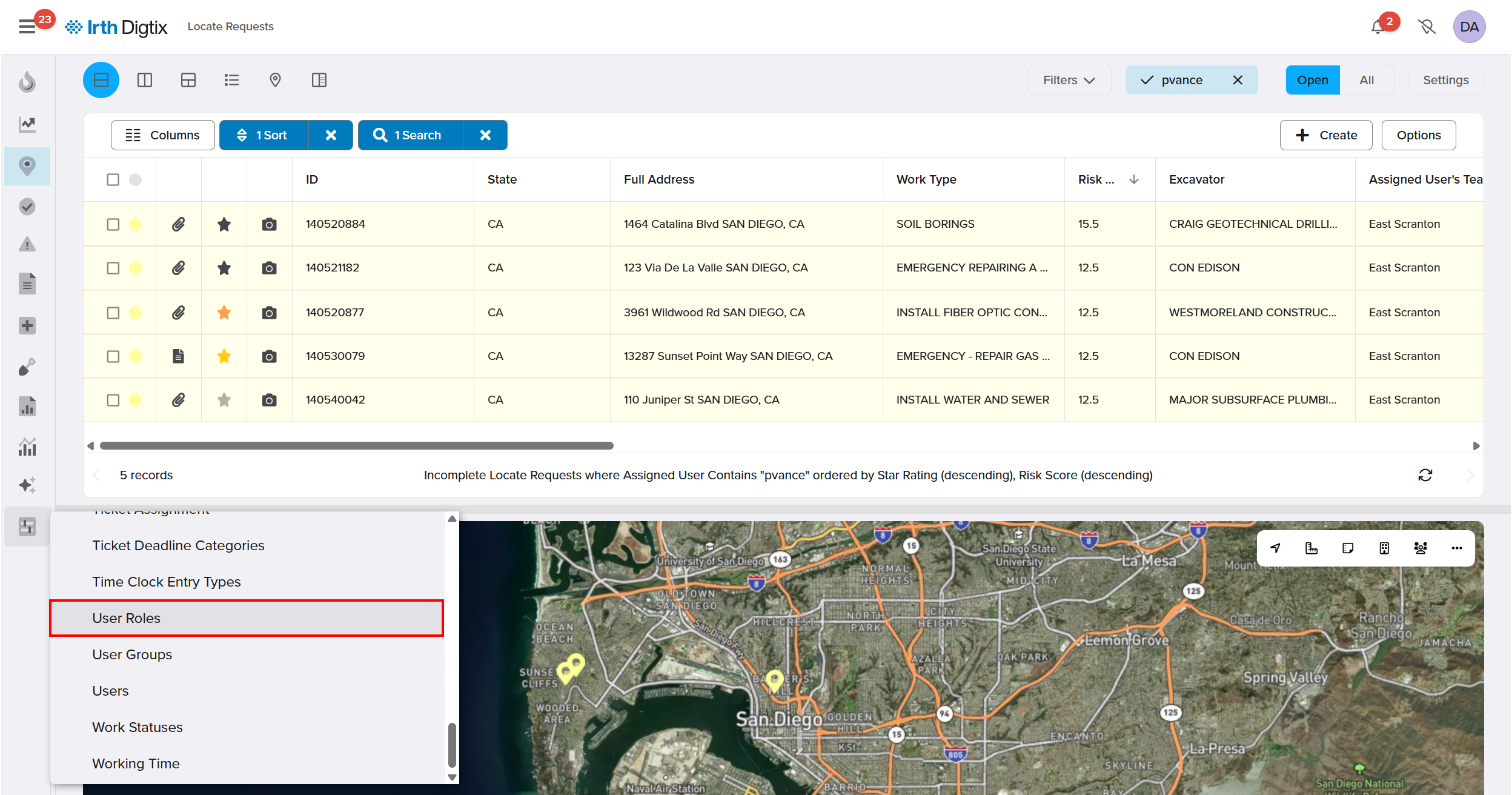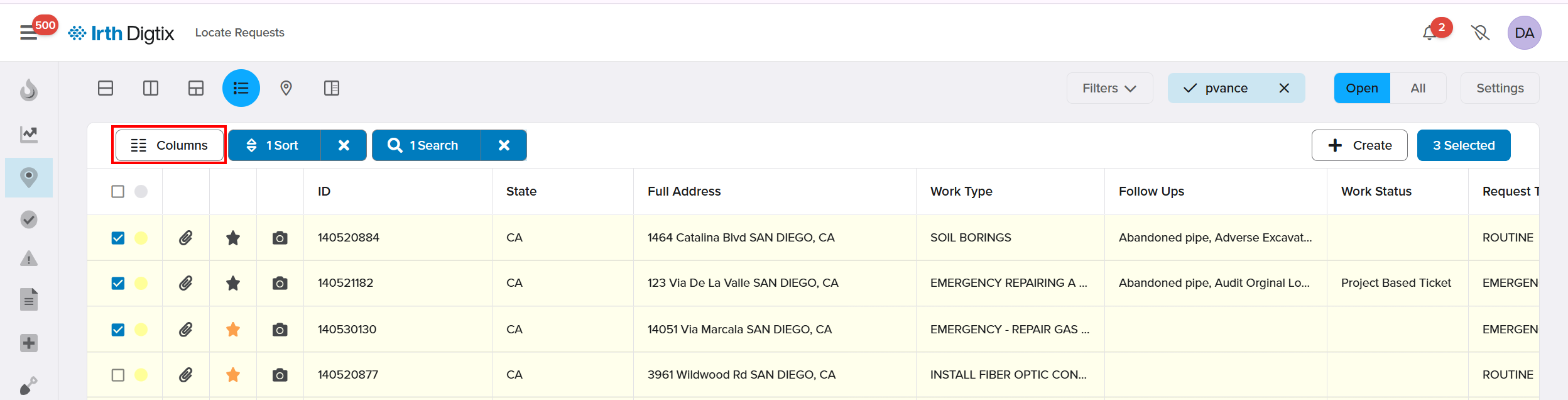 - Open the related locate request