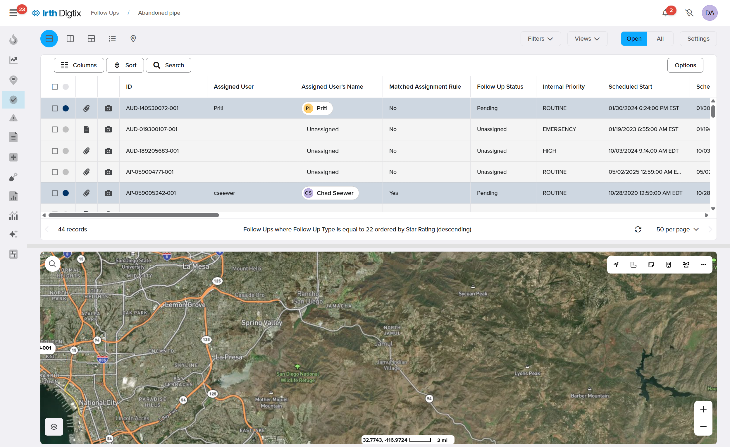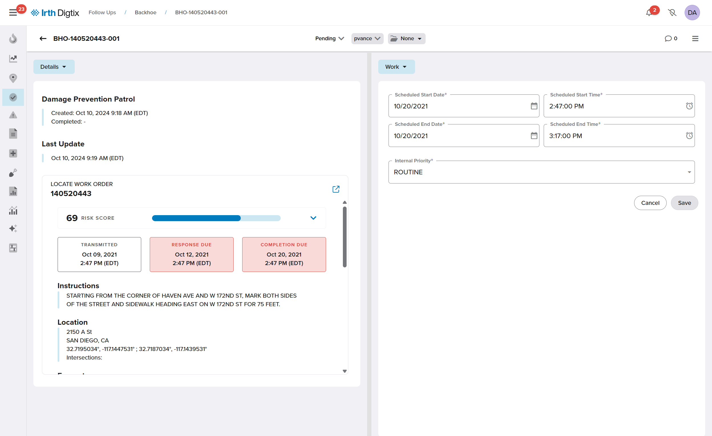 Adverse Excavator Patrols: Track and inspect excavation activities performed by contractors with prior safety concerns, improving accountability and safety outcomes.