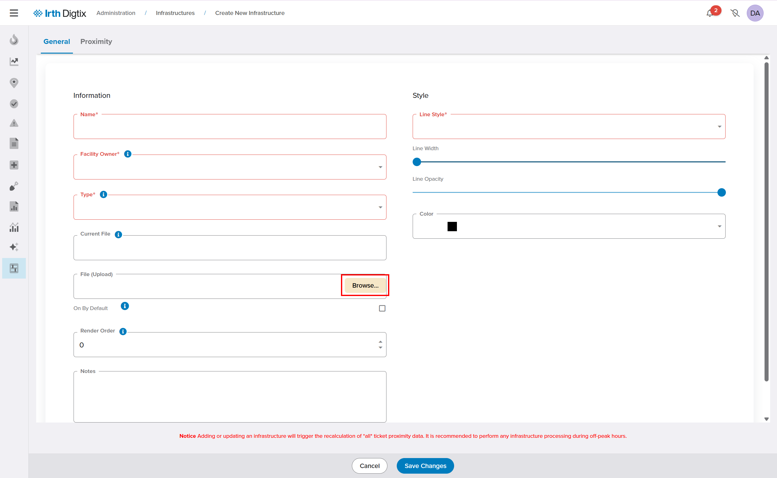 To access this feature, go to: Digtix > Administration > Infrastructures