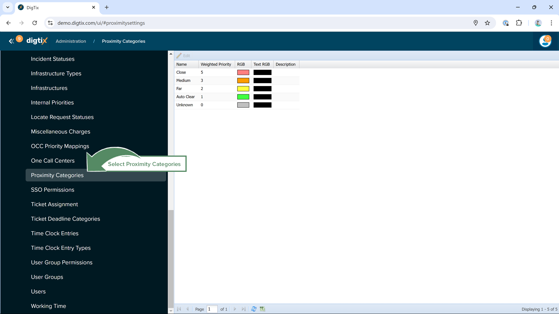 These proximity categories can be viewed and configured via the "Proximity Settings" section of the Administration page:
