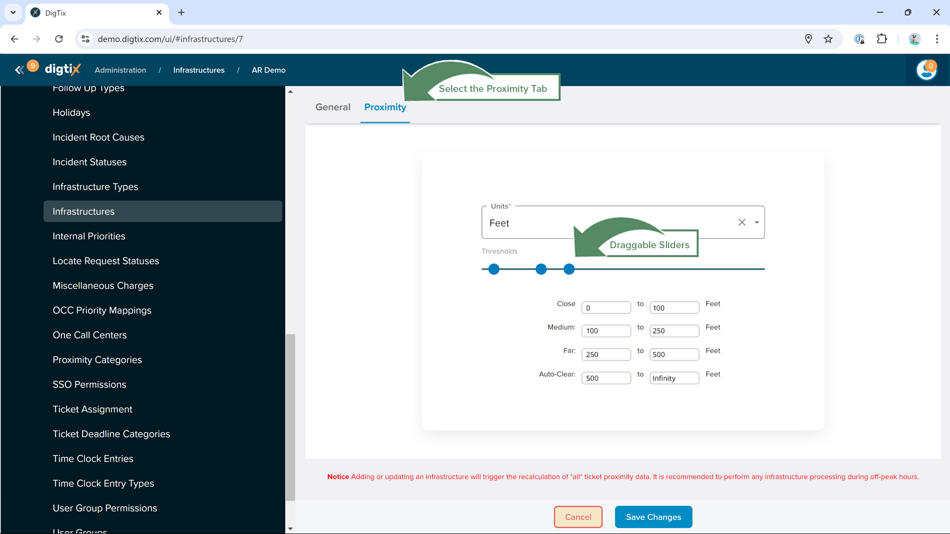 Figure 4: Setting Infrastructure Proximity Thresholds