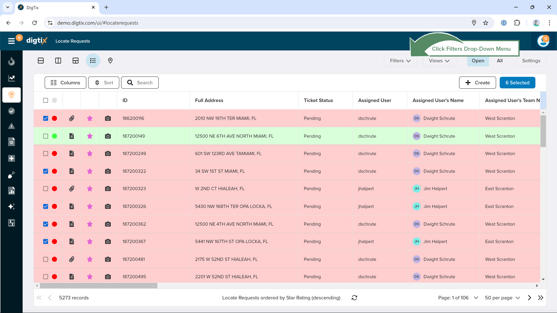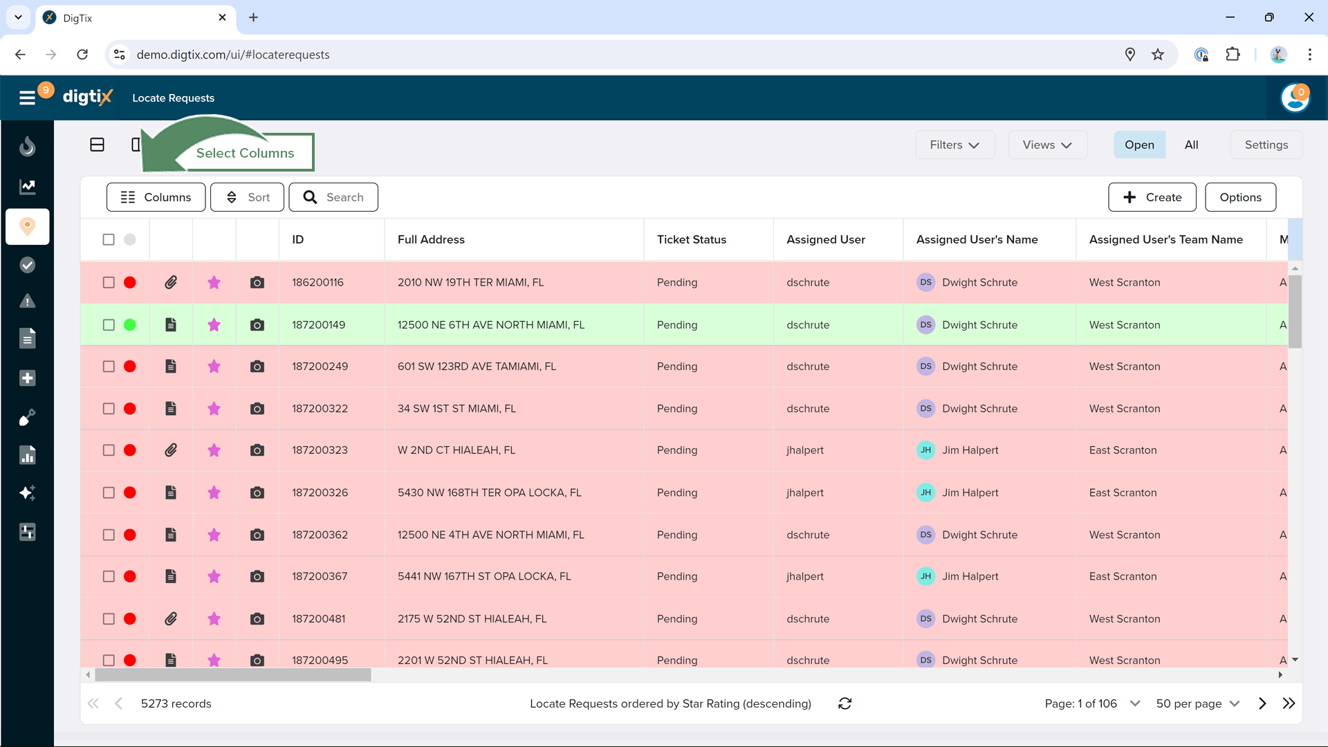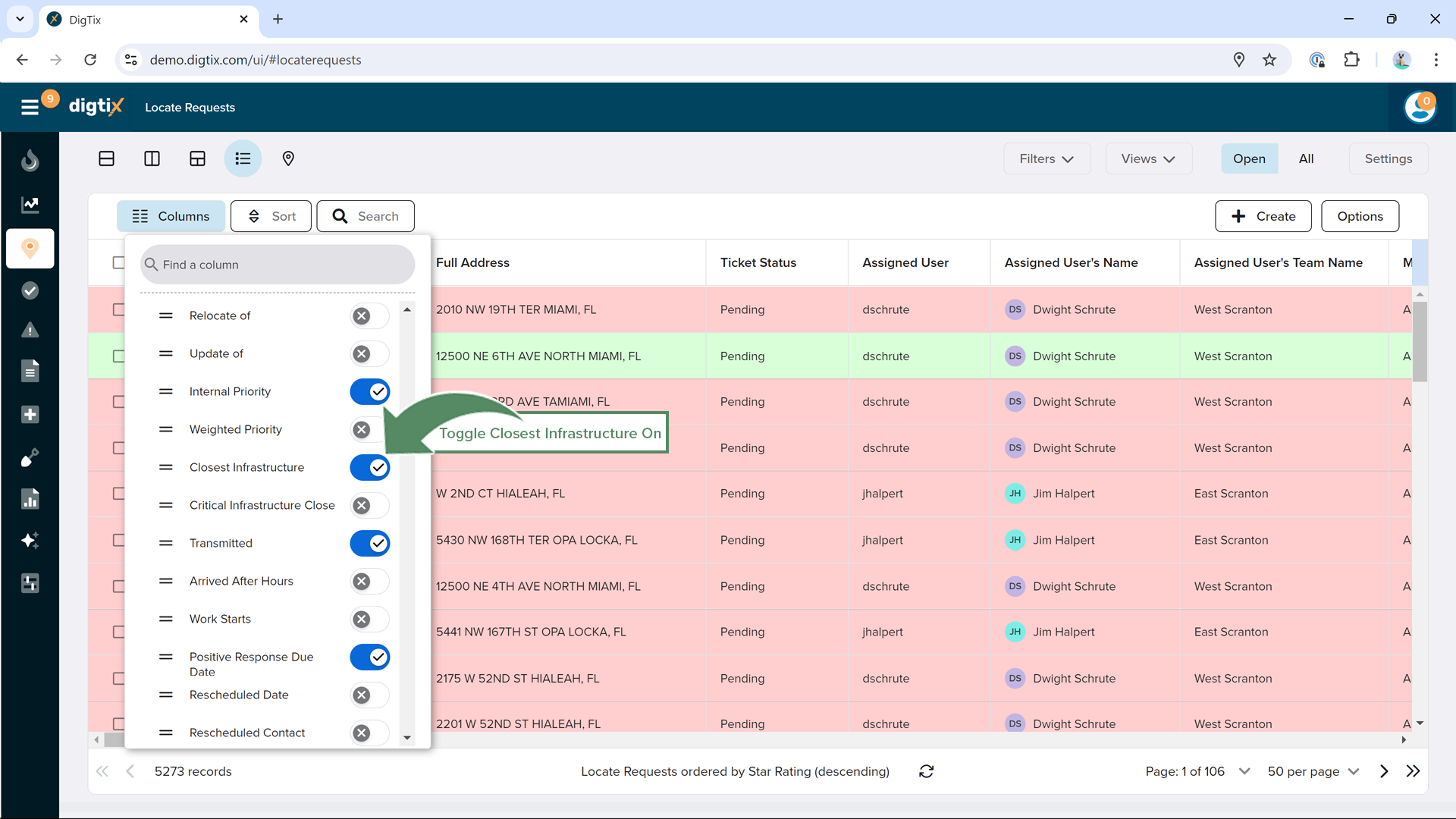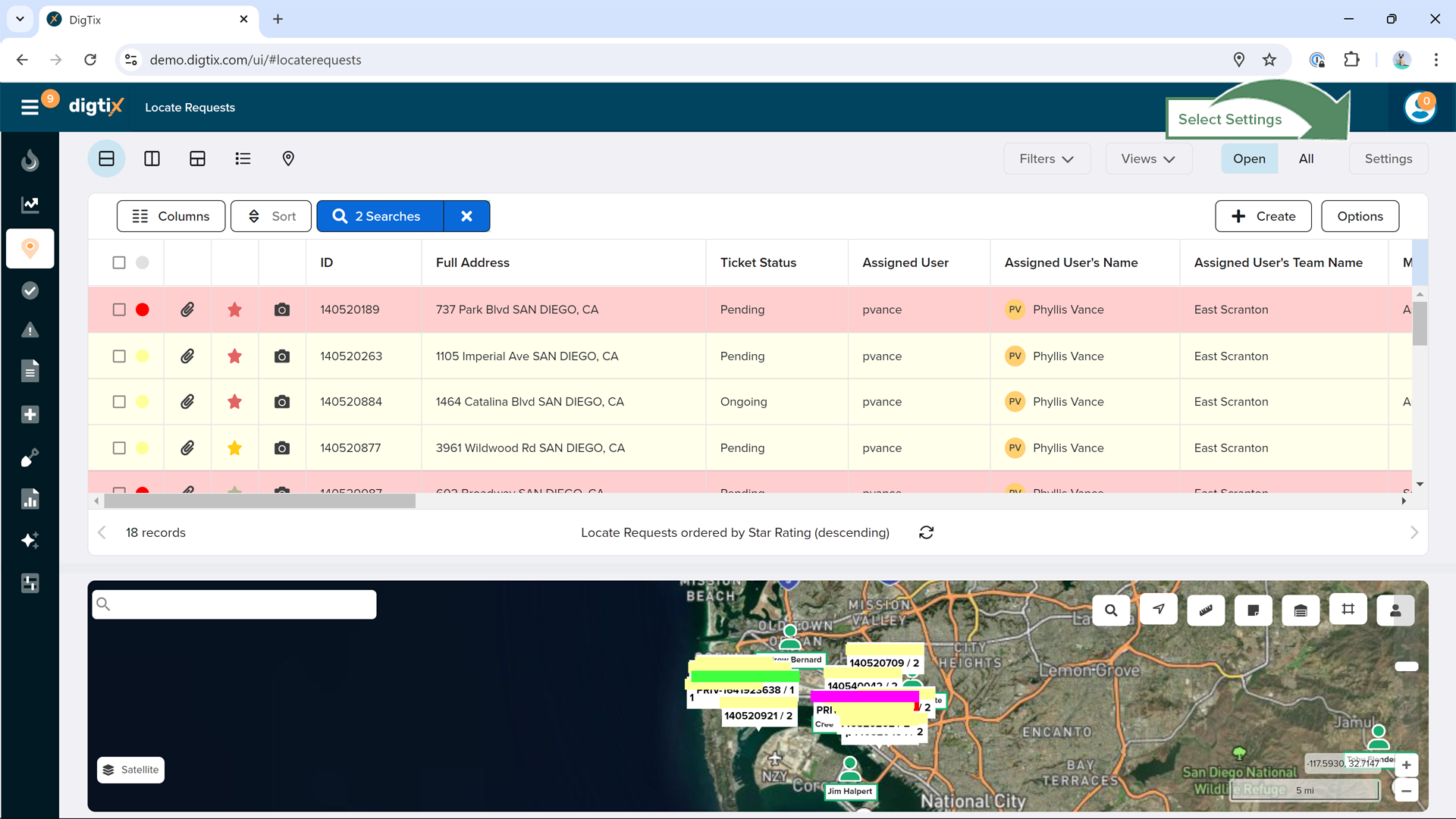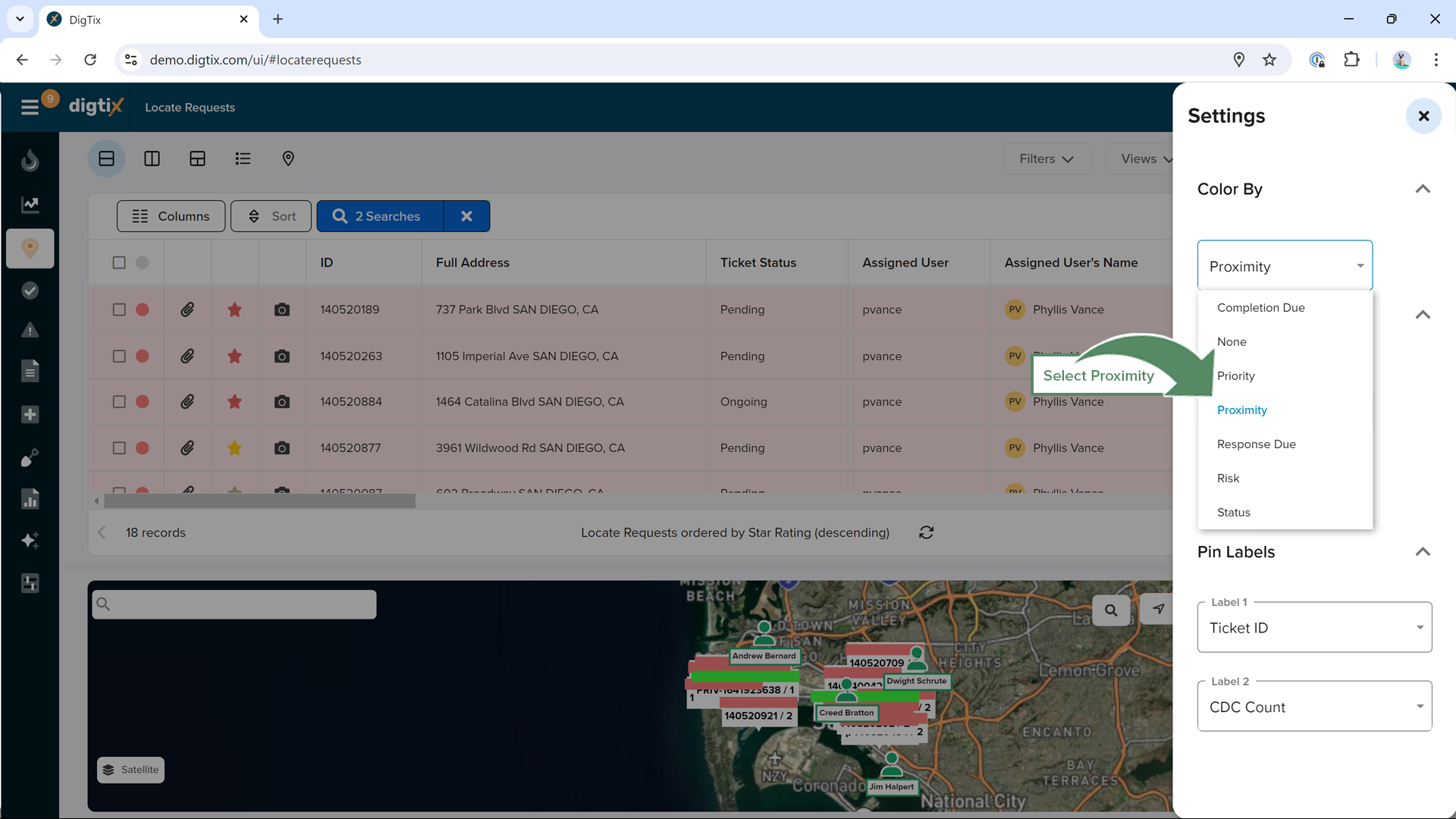 Figure 10: Viewing Locate Request Proximity in the Ticket Grid