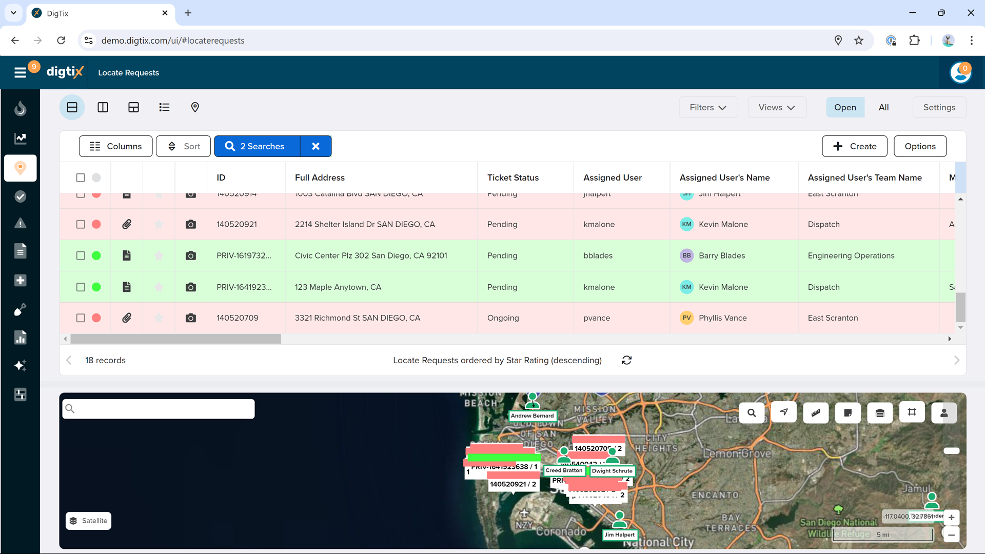 Once the proximity is calculated and categorized for a locate request, it can be visualized and managed in a few different ways.