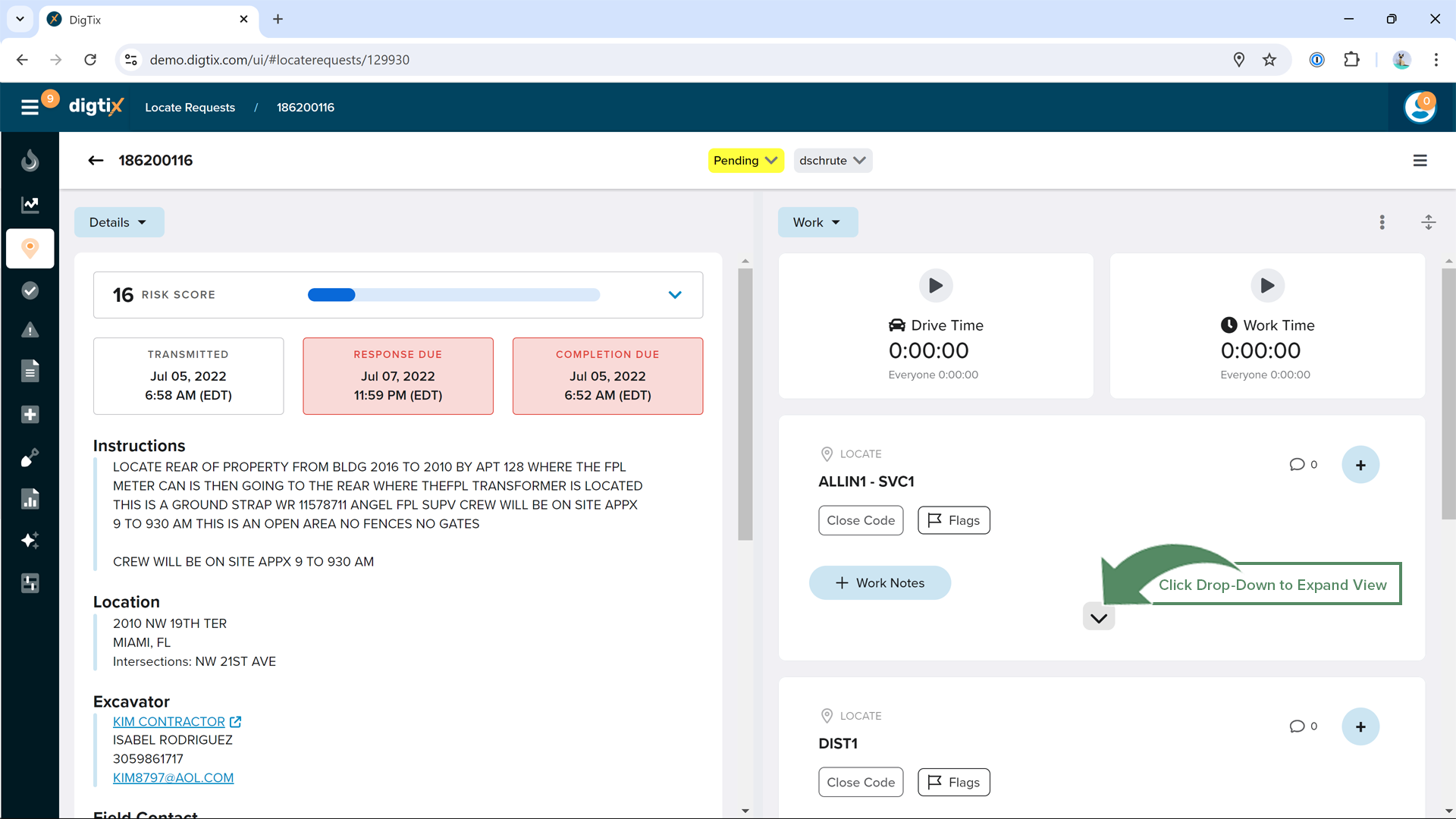 Figure 7: Viewing Locate Request Proximity in the Ticket Window
