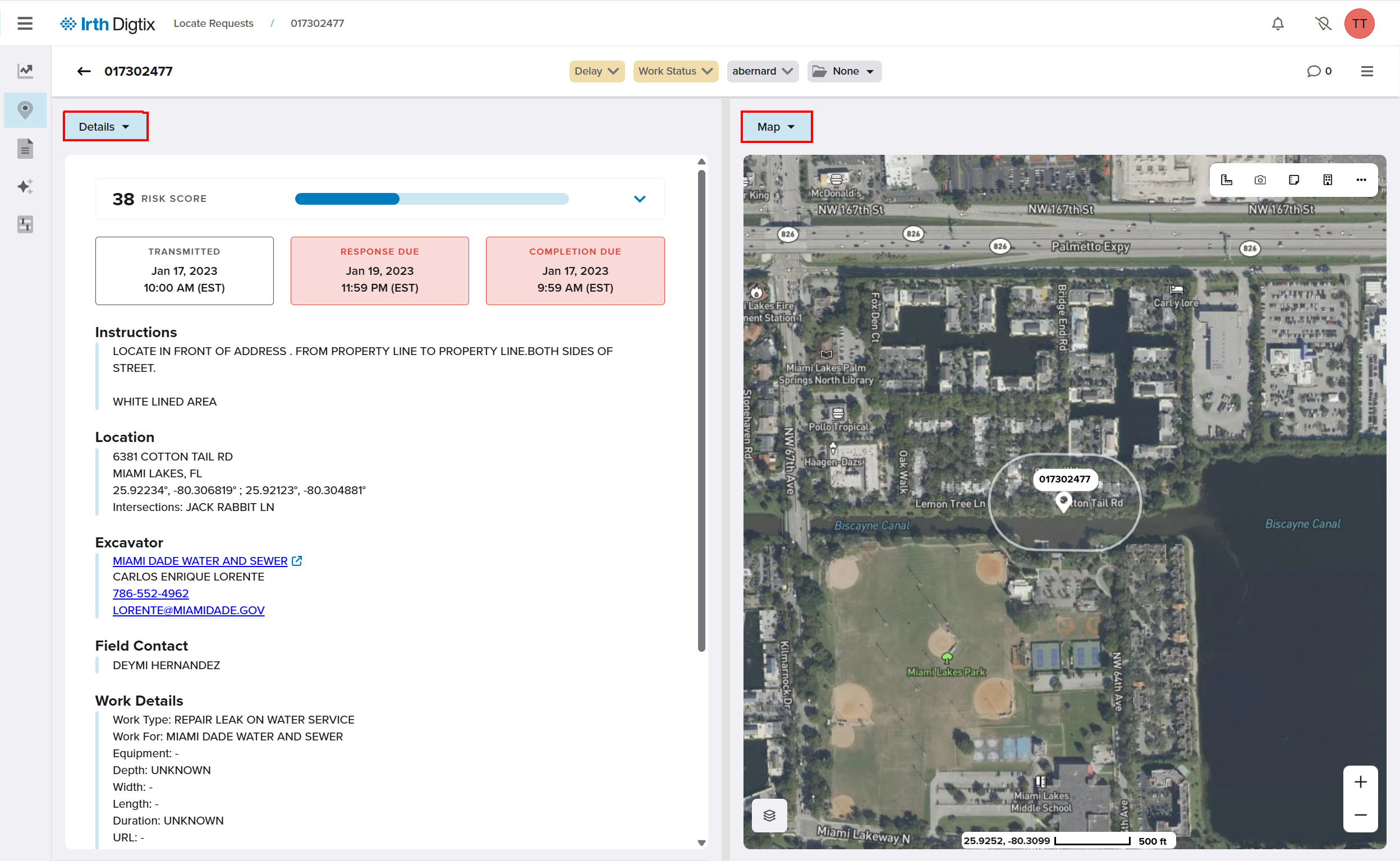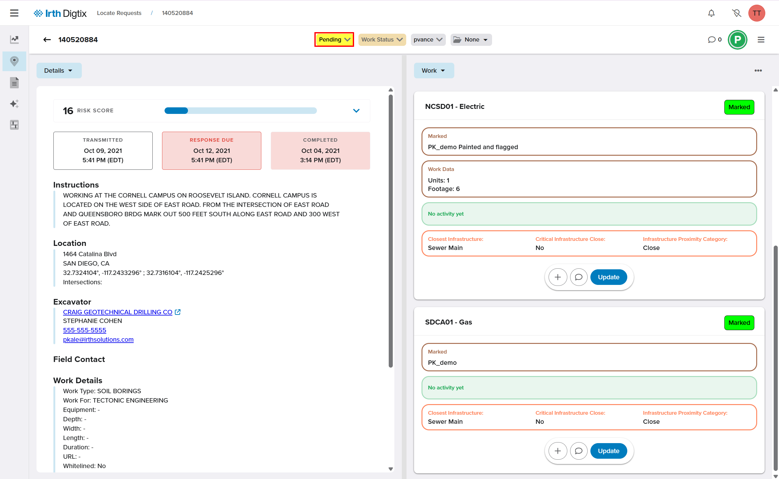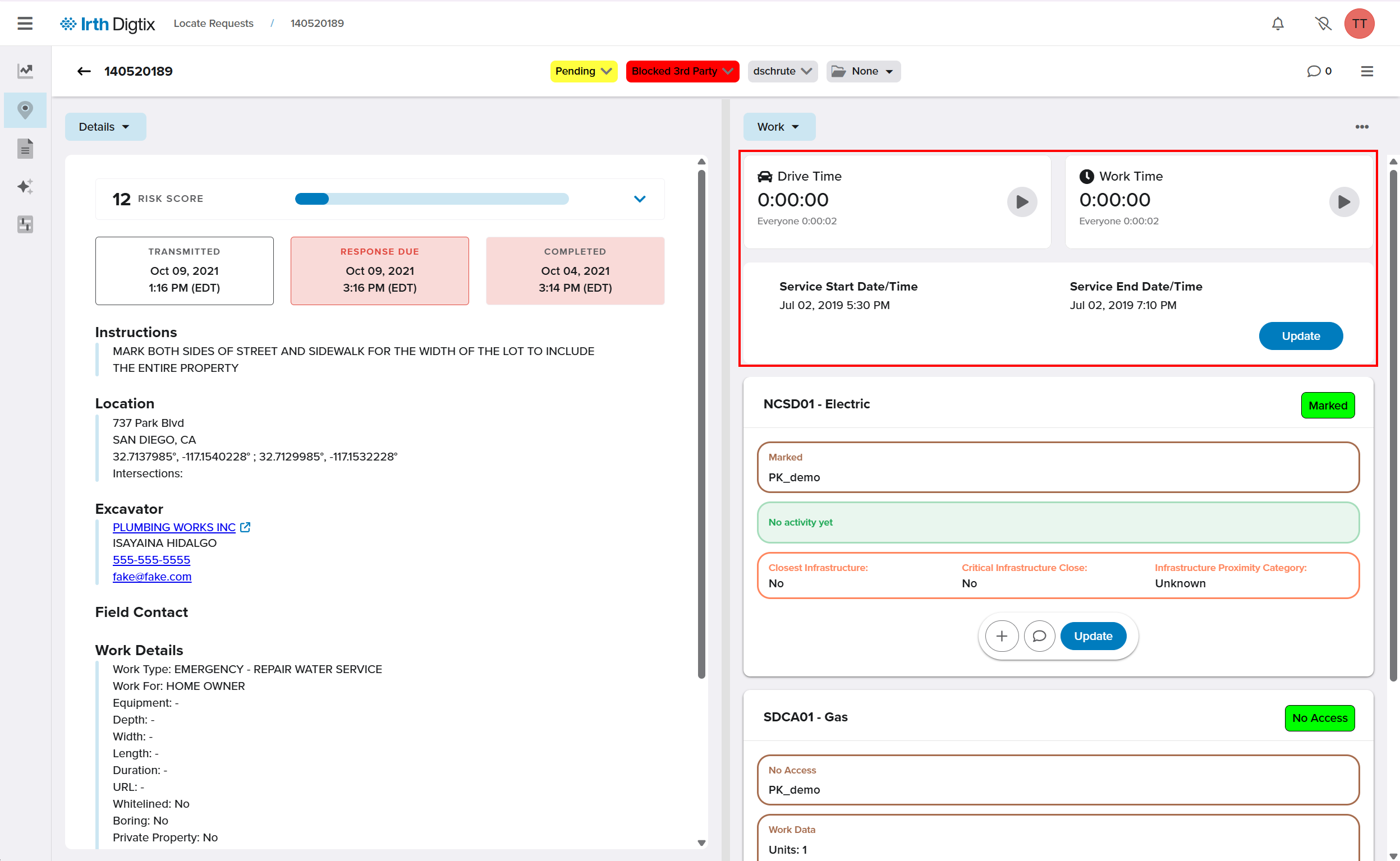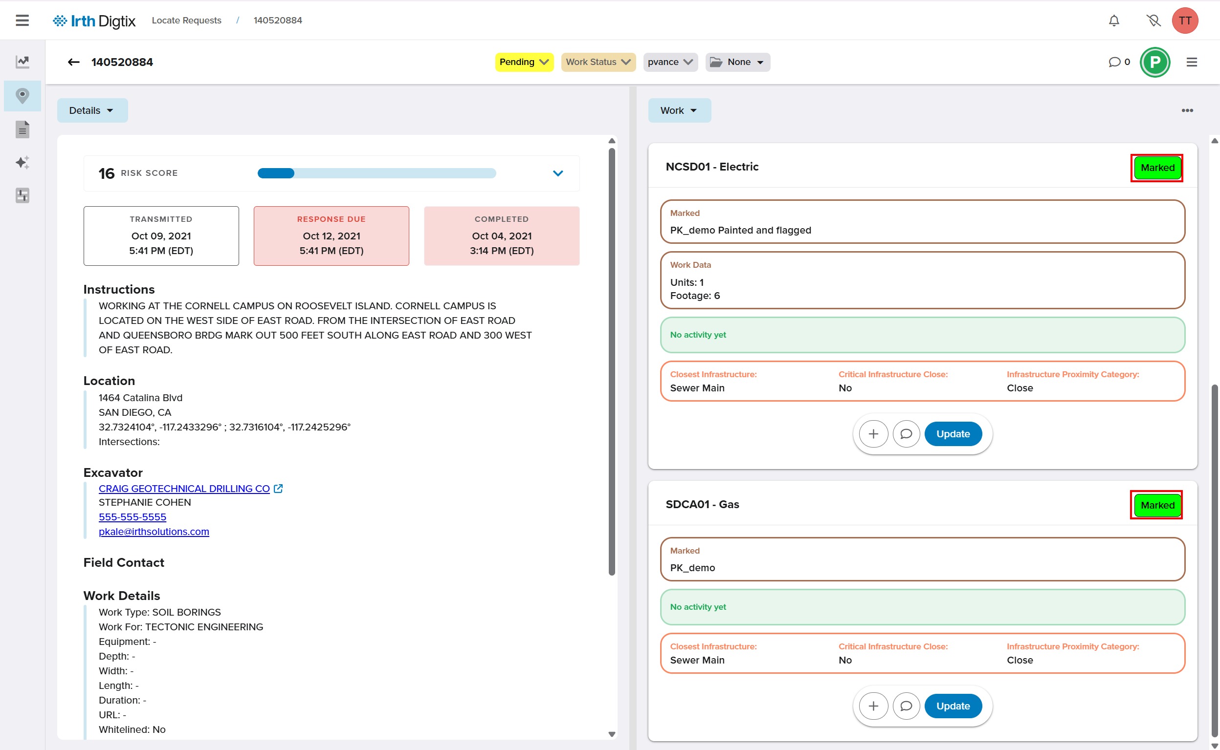 • Daily Locate Management: Quickly review and prioritize open locate requests using the grid and map views, helping reduce response times and missed deadlines.