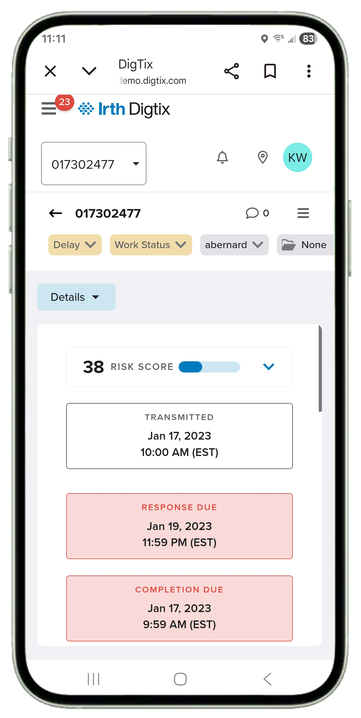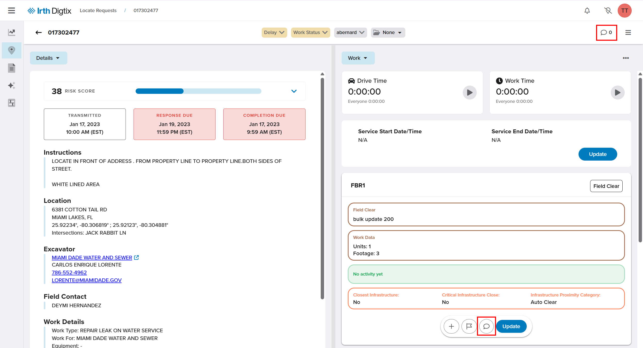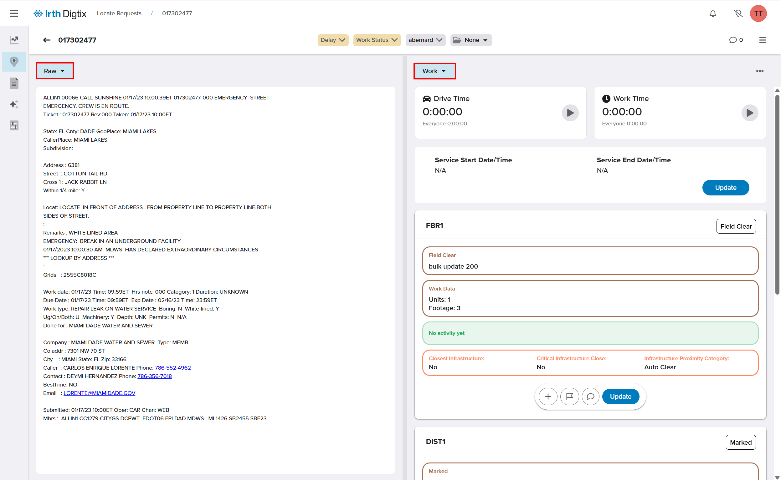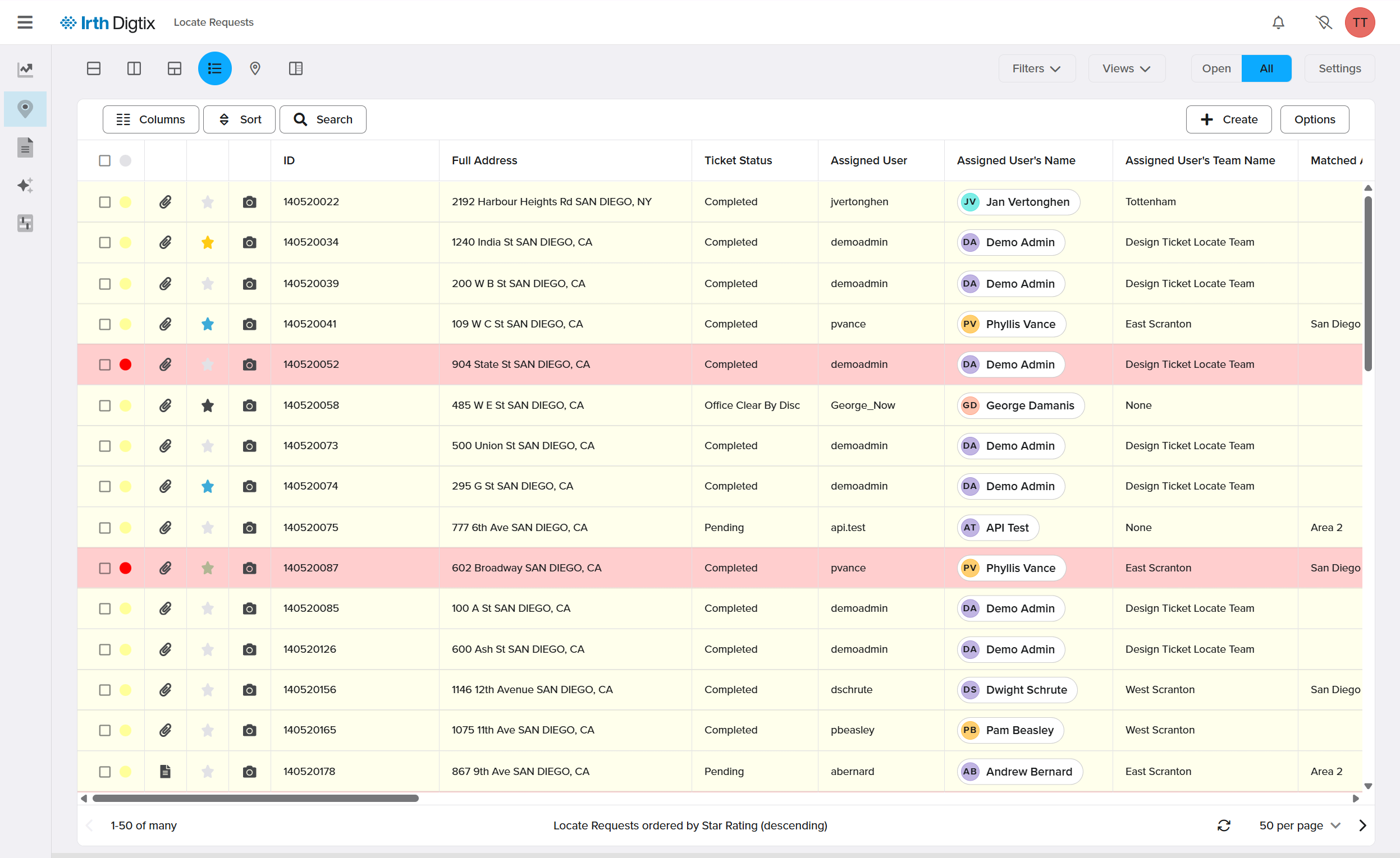 • Daily Locate Management: Quickly review and prioritize open locate requests using the grid and map views, helping reduce response times and missed deadlines.