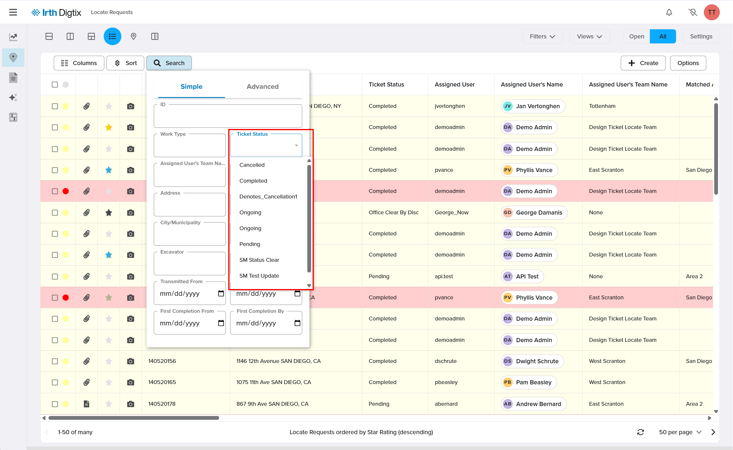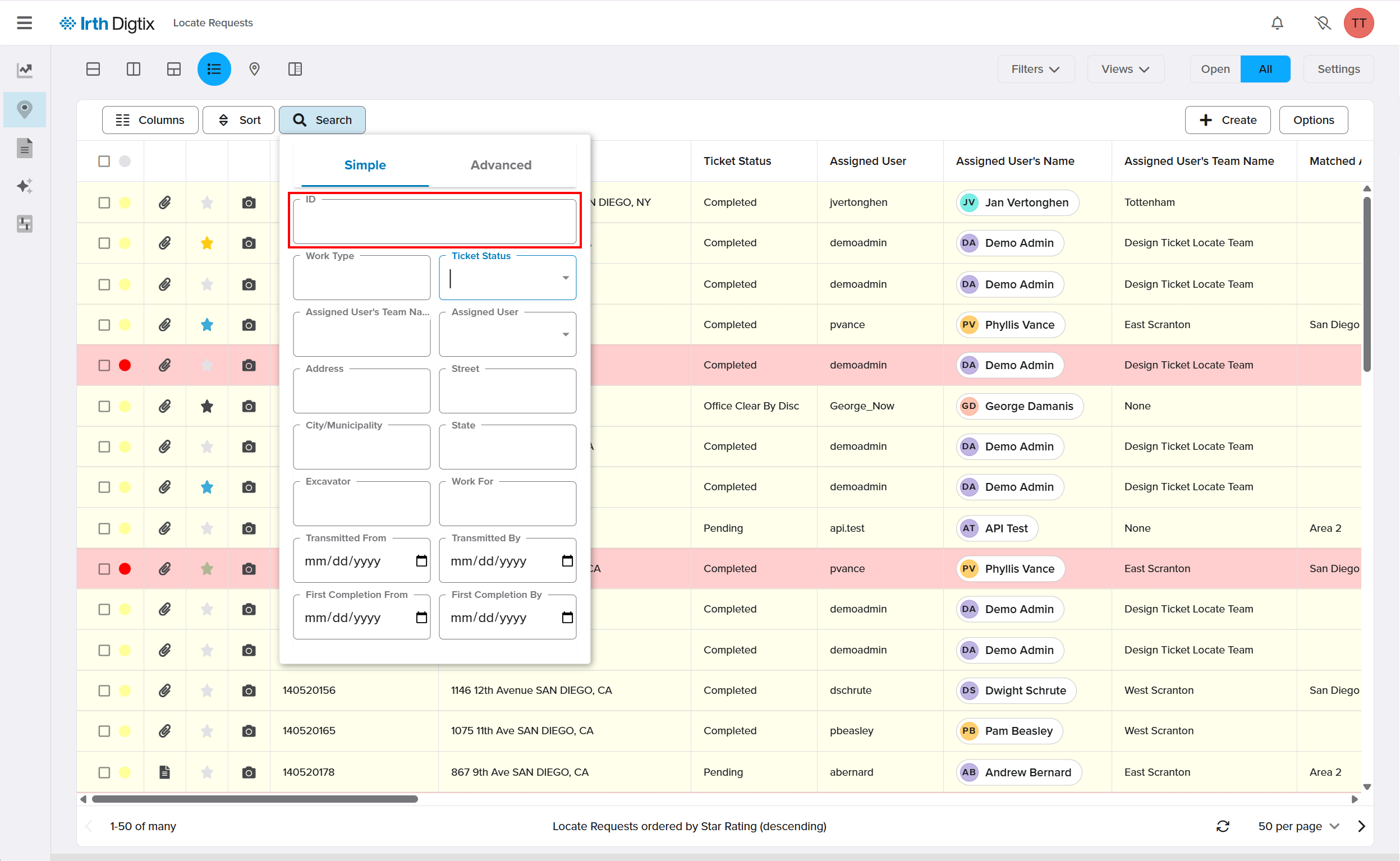 NOTE: You can also search for a specific ticket using any ticket attribute (street name, excavator name, etc).