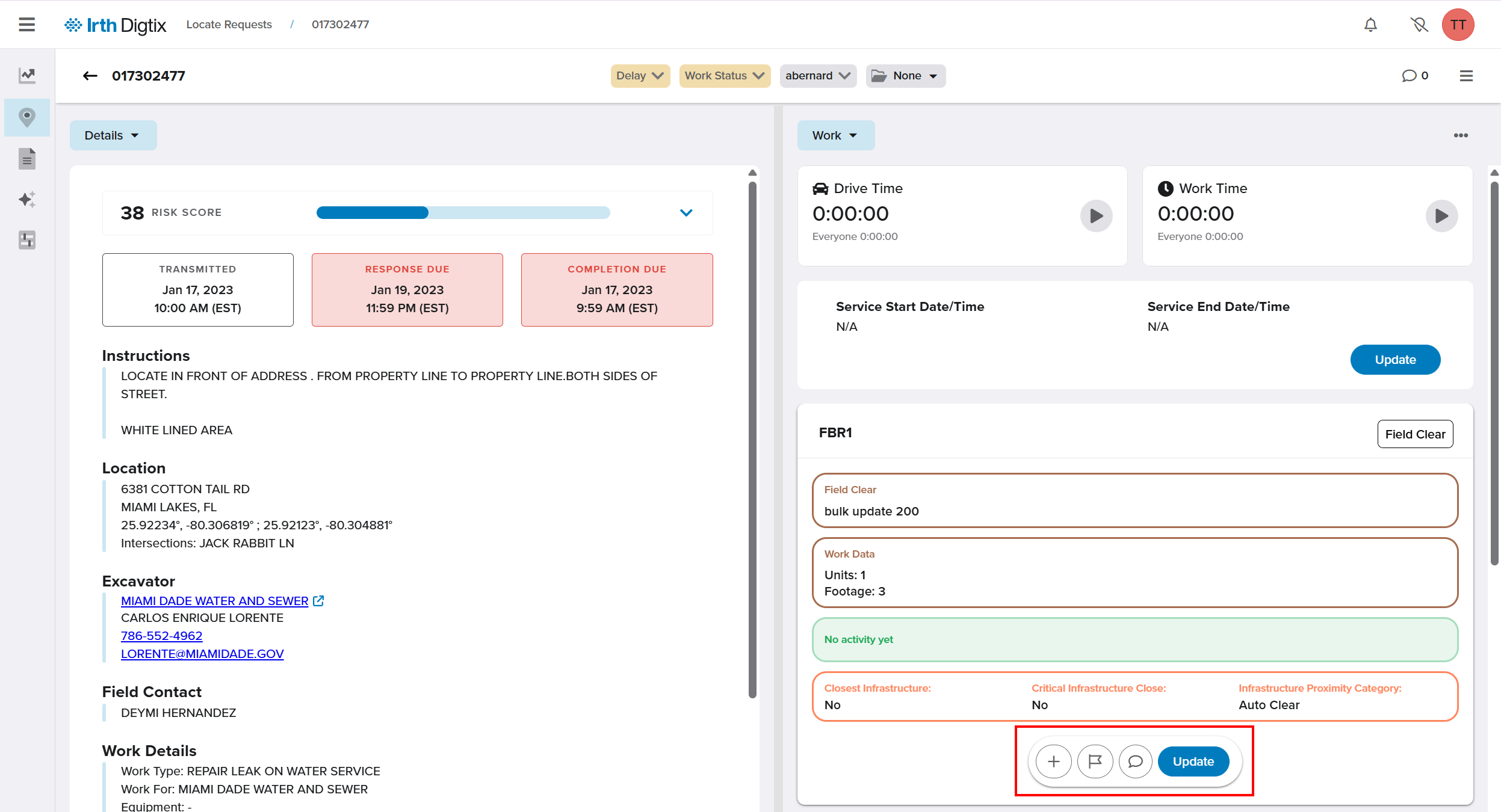 Each CDC now includes an action bar displayed directly beneath it in the Work section. This action bar provides quick access to common tasks such as adding Work Notes, updating Footage, and applying close codes without leaving the ticket.