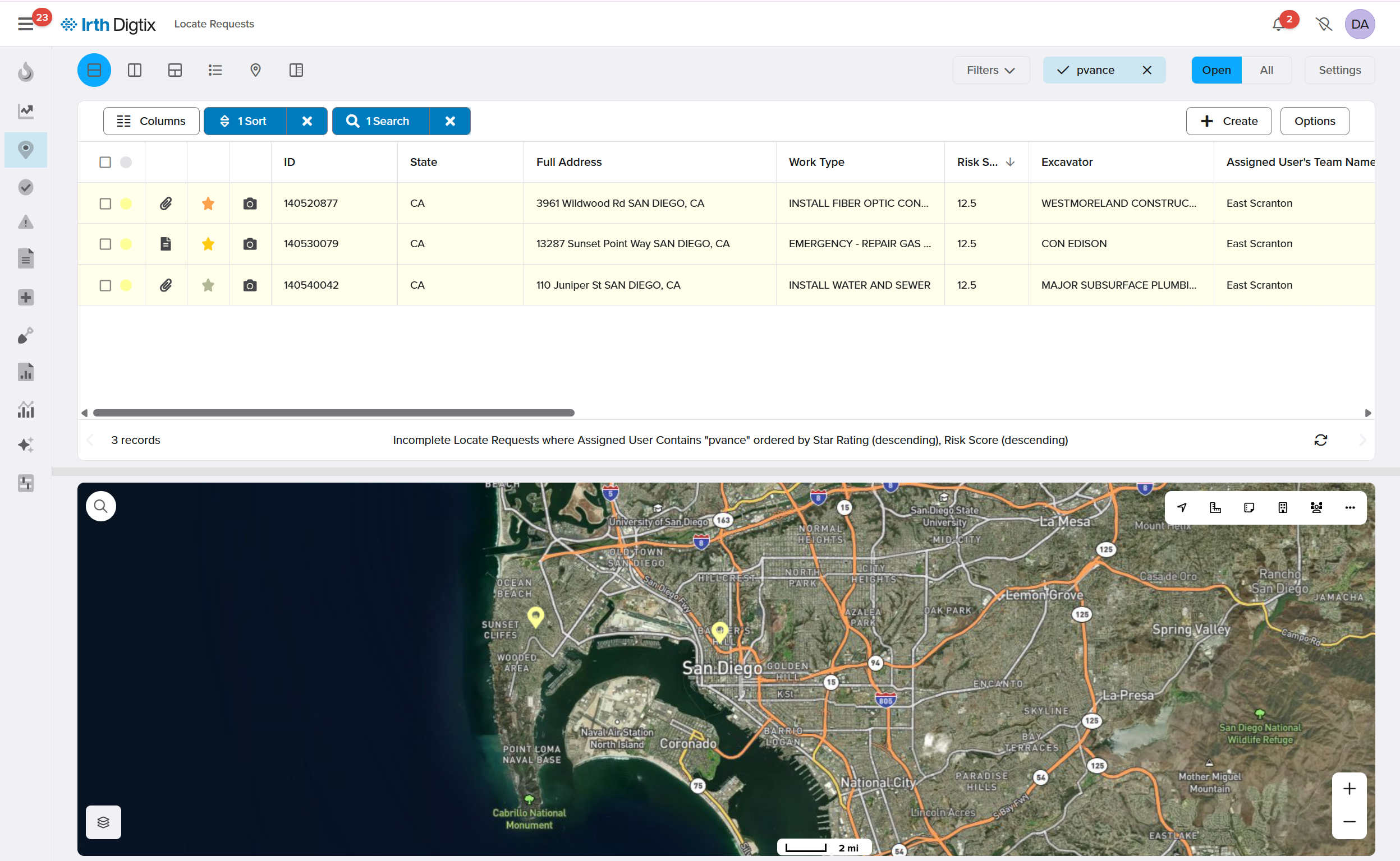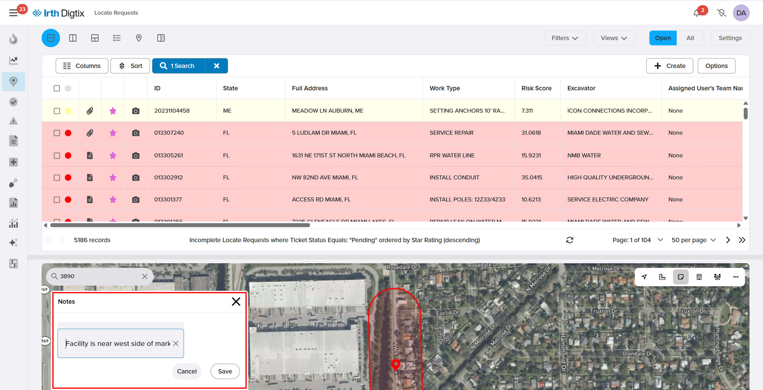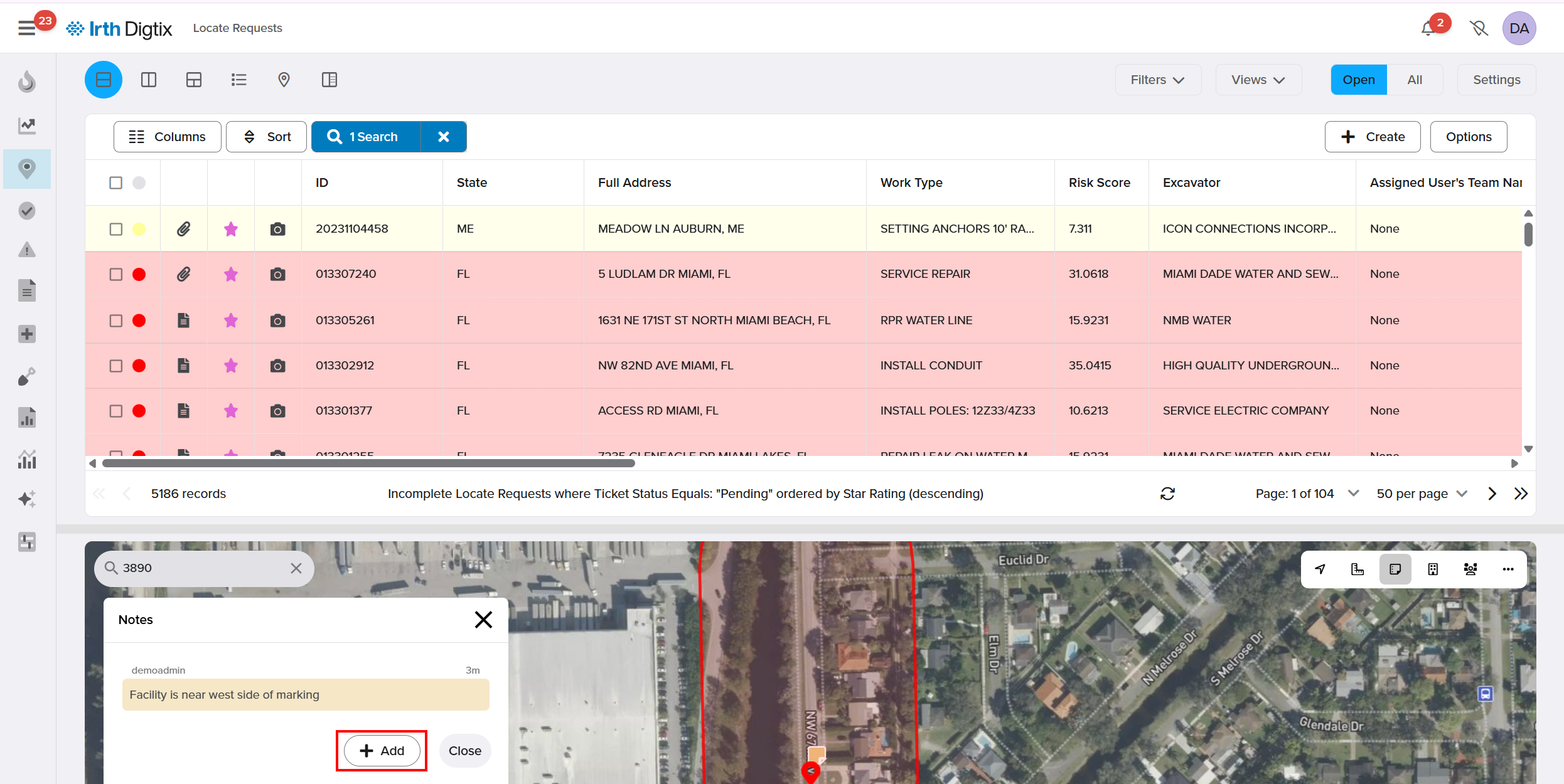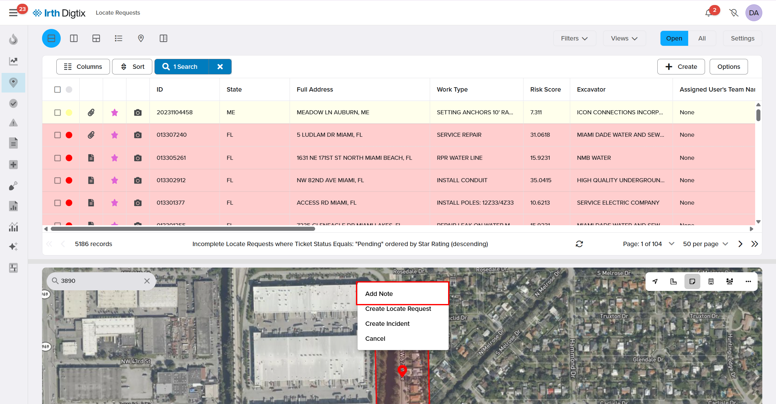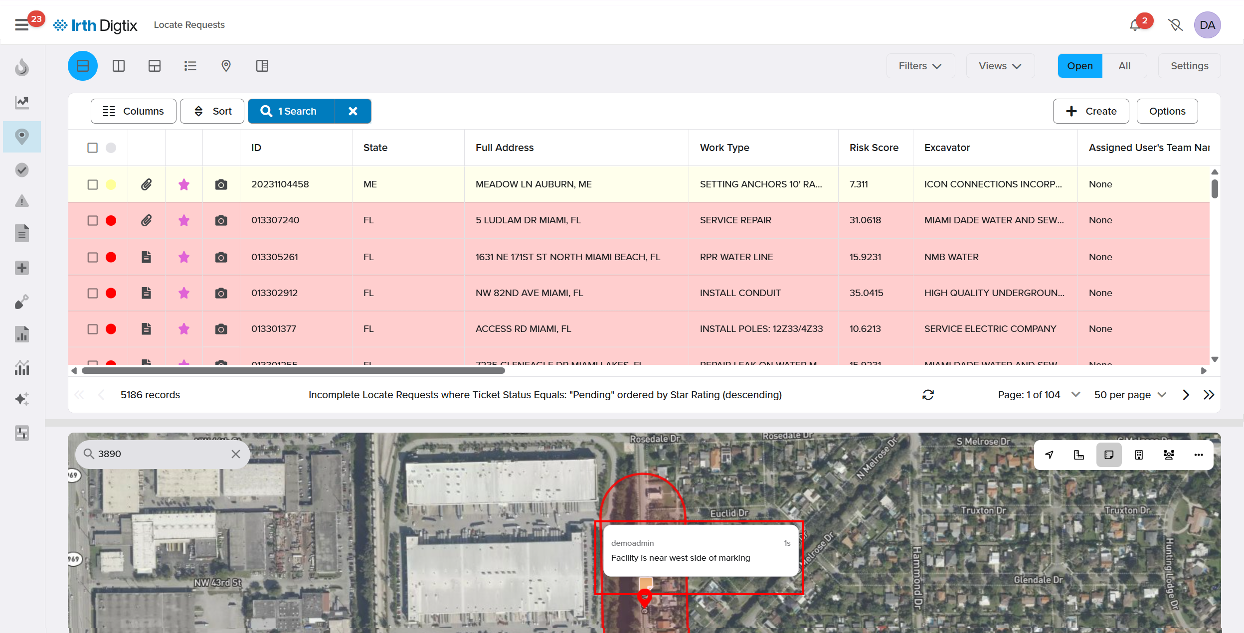 The Ticket Map provides a geographic view of tickets from the Locates, Incidents, and Follow-Ups pages, allowing users to quickly understand where work is occurring, identify nearby infrastructure, and make more informed decisions. This feature is intended for operational users, dispatchers, and supervisors who need spatial awareness to improve response times, reduce risk, and streamline daily workflows.