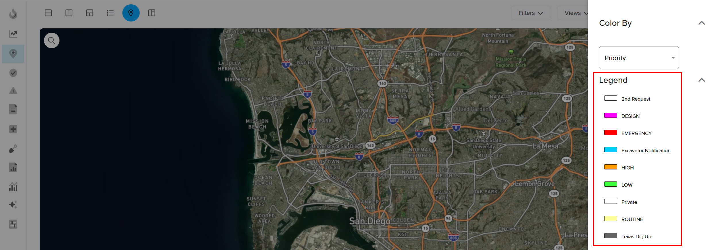 - Review the Legend, displayed directly below the Color By menu, to understand color meanings.