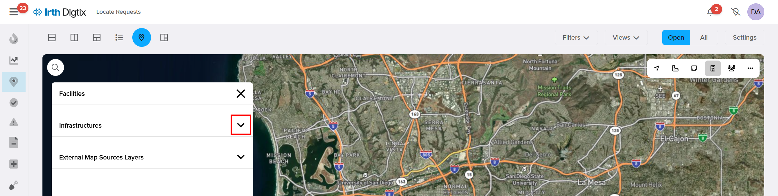 - In the Infrastructures section, toggle available infrastructure layers as needed.