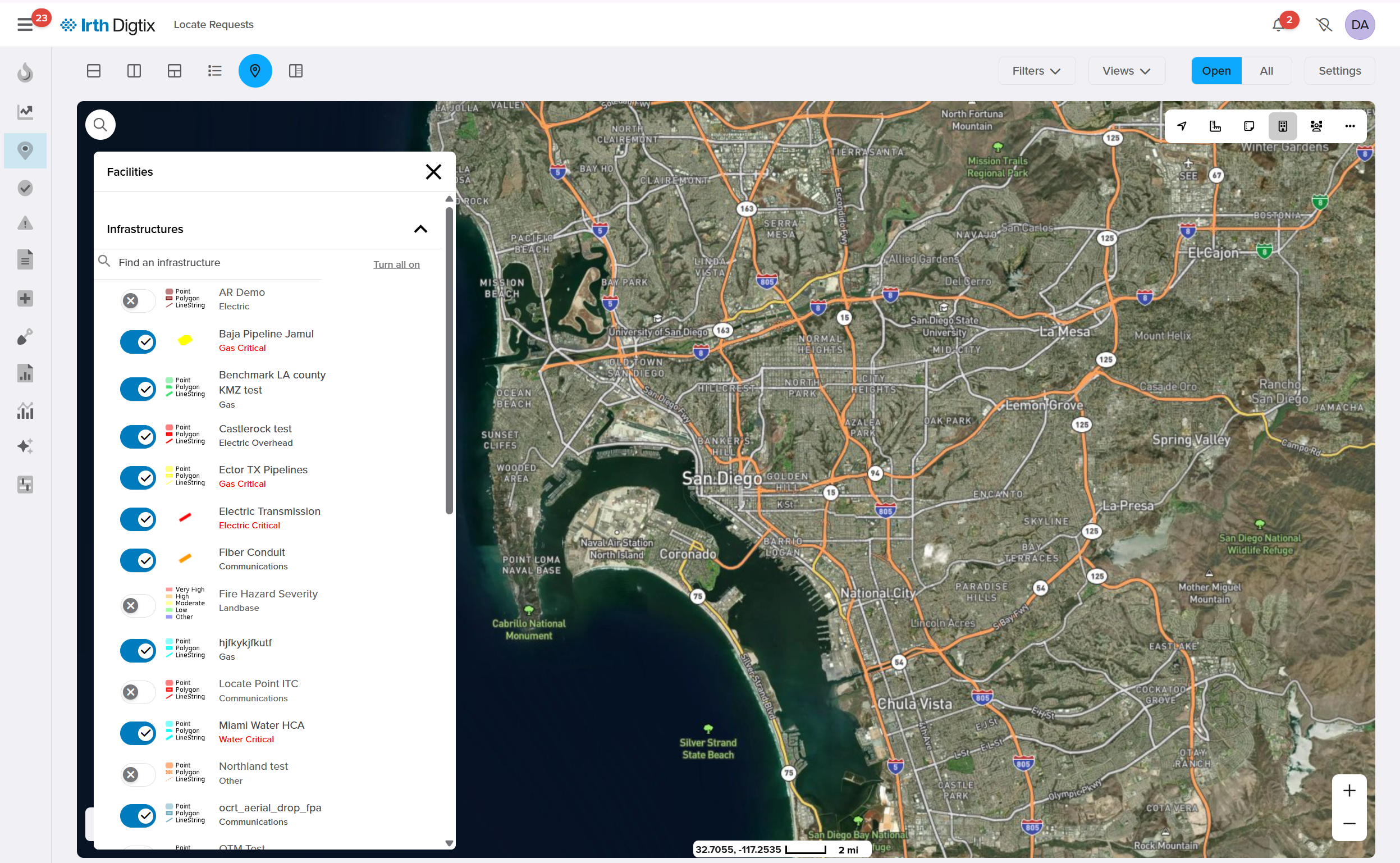Infrastructure Data: Infrastructure must be loaded into Digtix to be visible when enabled on the map.