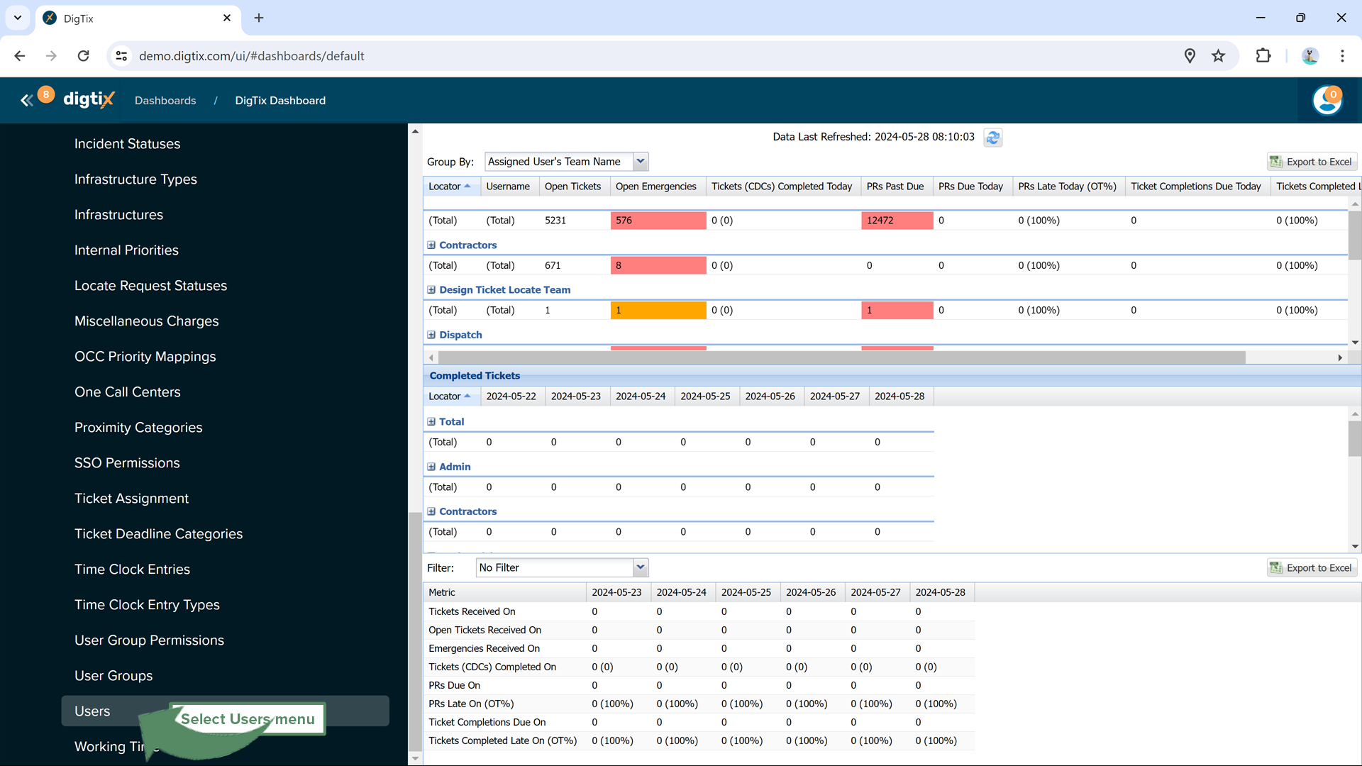 The first step in leveraging dispatchers within Digtix is to define which Digtix users are dispatchers. Dispatch users have access to a special set of dispatch tools within Digtix which are detailed below. To designate a Digtix user as a dispatcher, check the "Is Dispatch User" checkbox on the user configuration window.