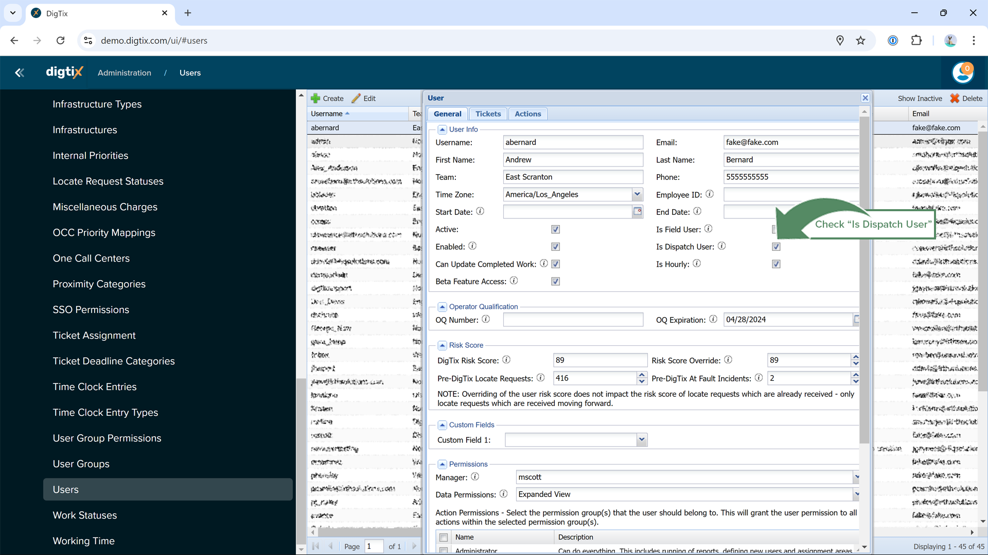 Figure 4: Configuring User as a "Dispatch User"