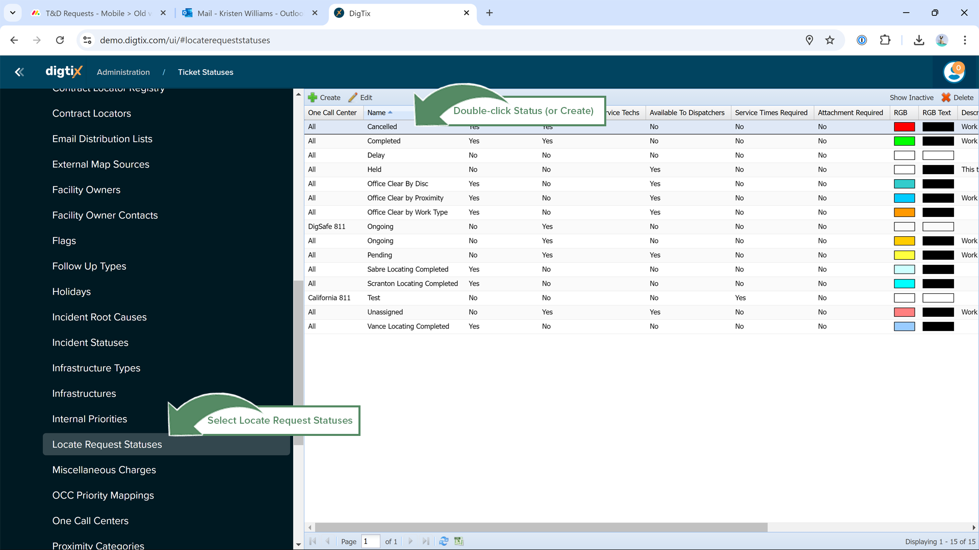Figure 5: Select Locate Request Statuses