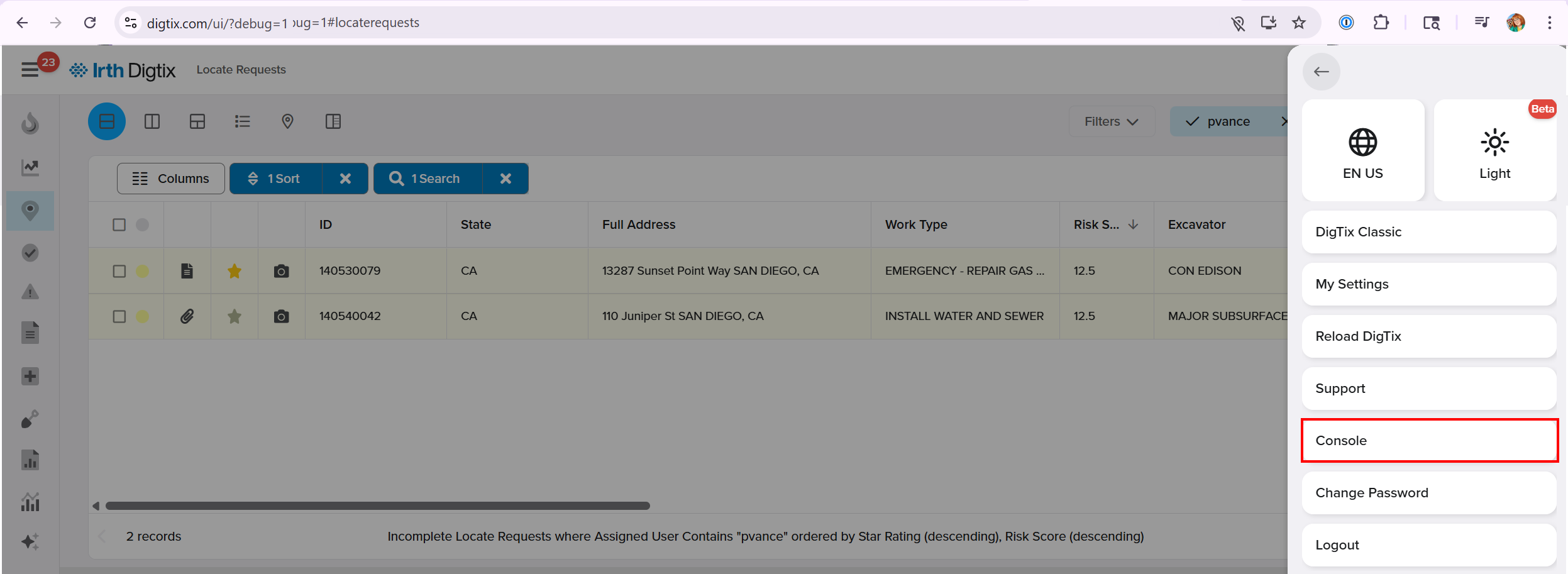 To access this feature, once you are in debug mode, go to: Digtix > Account Menu > Console