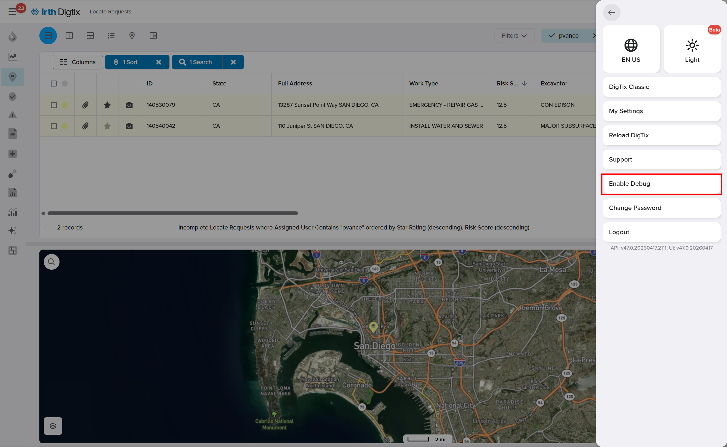 - Select the Profile icon and select Enable Debug from the menu.