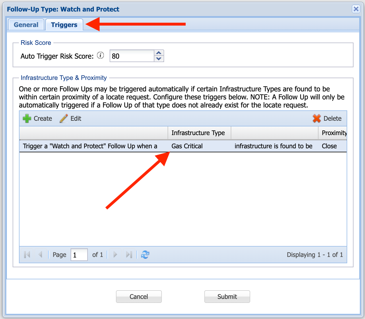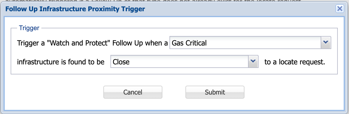 It is possible to automatically trigger follow-ups based on infrastructure criticality/proximity. Such triggers can be configured from the "Triggers" tab on the "Follow Up Types" section of the Digtix Administration page. Follow-ups that are automatically triggered can also be automatically assigned to the appropriate damage prevention specialist via the "Ticket Assignment" section of the Digtix Administration page.