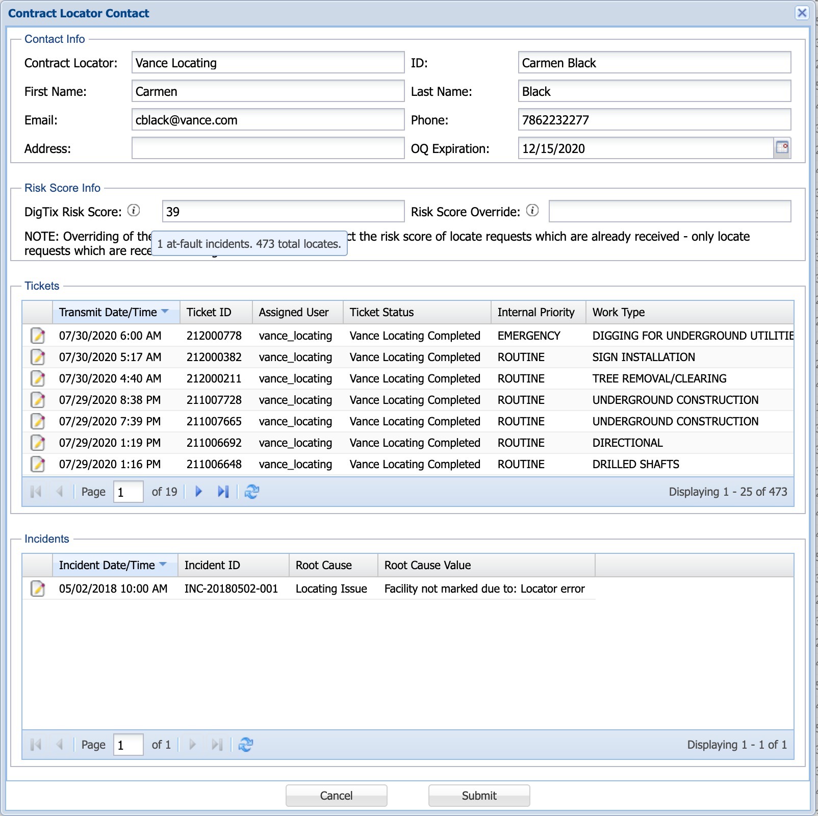 Excavator risk scores is one of the many factors used in determining the risk for locate requests.