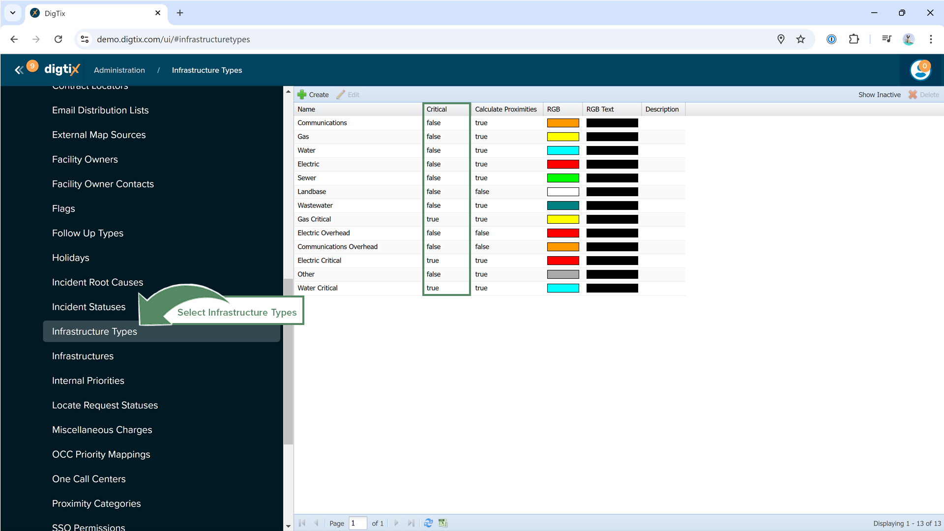 Underground assets and customer service areas may be designated as "Critical" through the "Infrastructure Types" section of the Administration page.