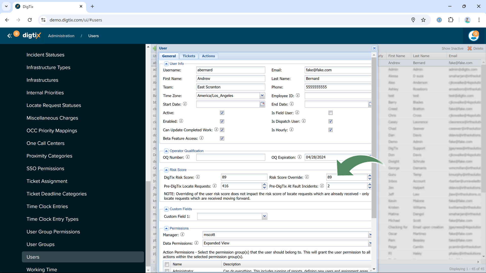 Digtix automatically calculates and maintains a risk score for every defined user based on past performance.